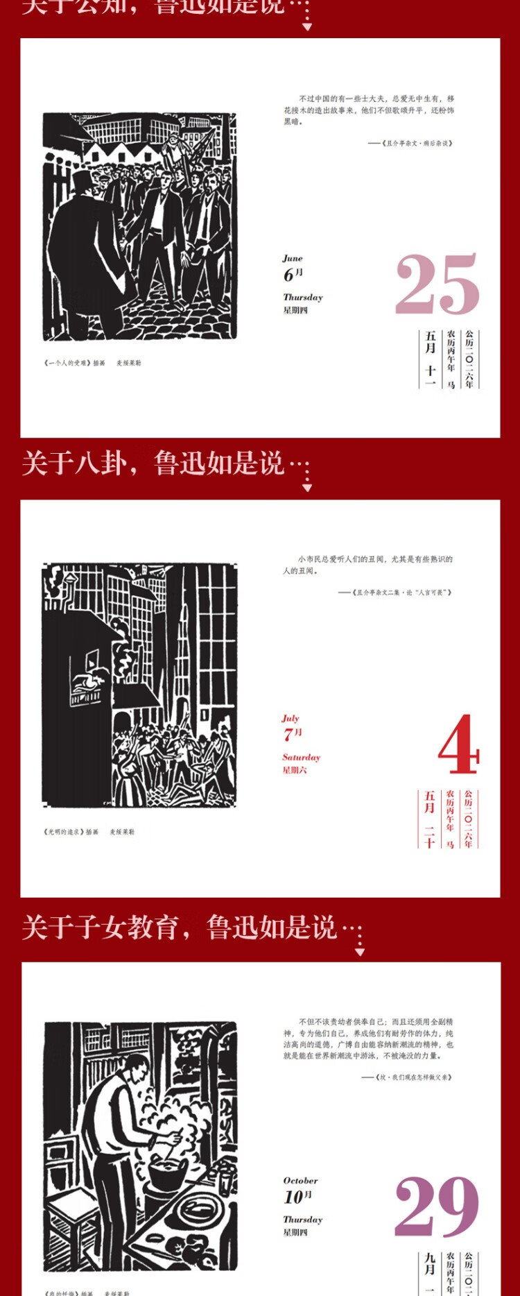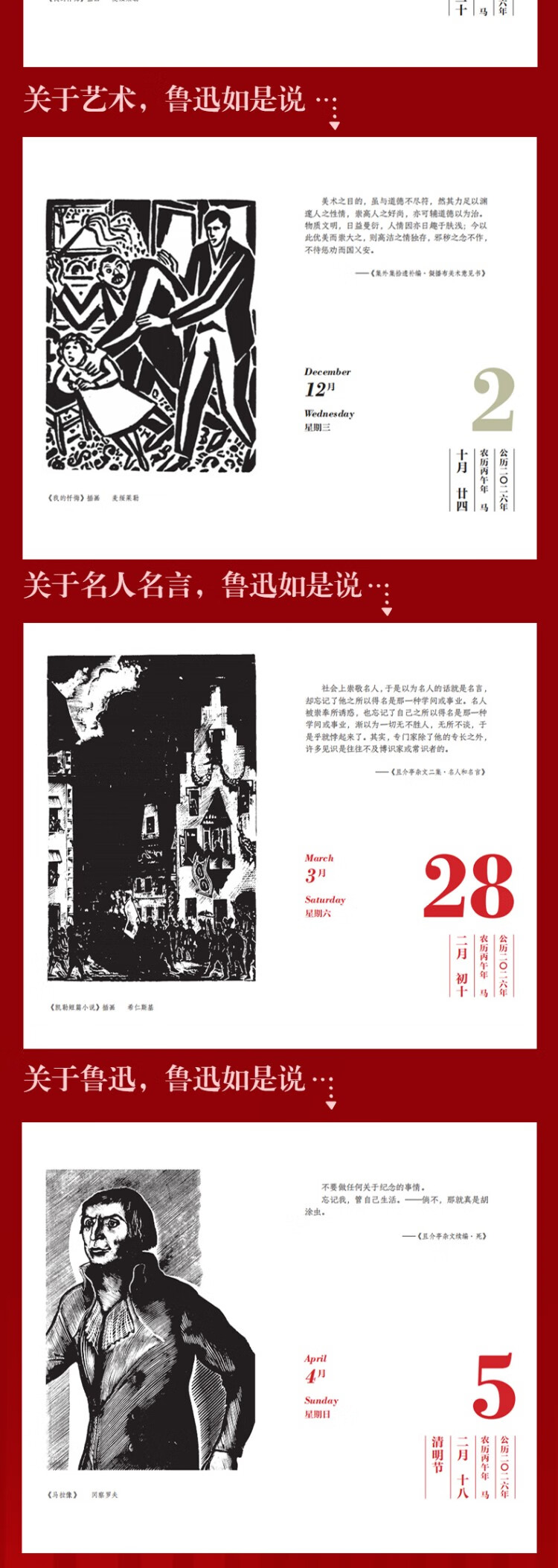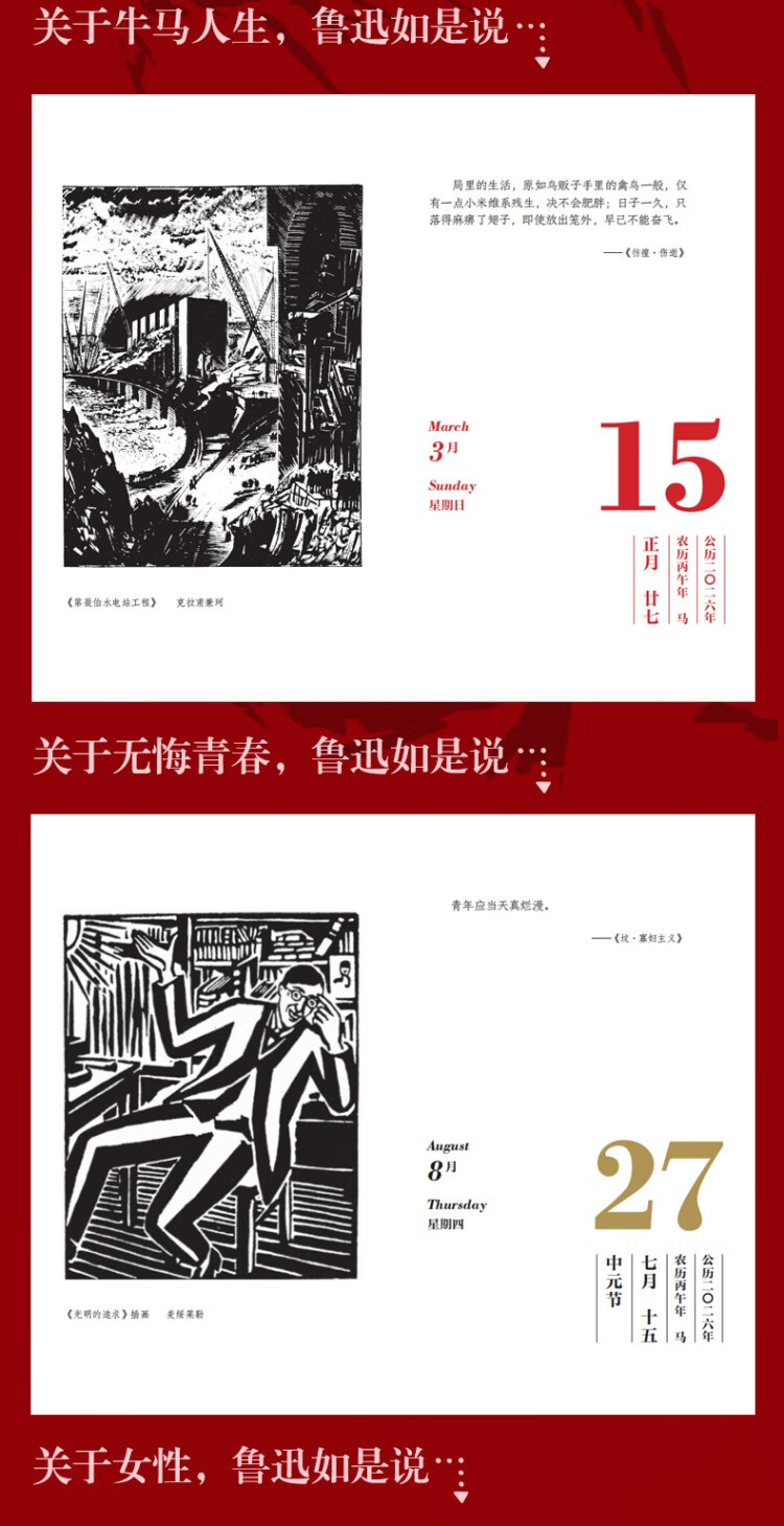 Awakening in the World Lu Xun Calendar 2026 Lu Xun’s Art Lu Xun Cultural Creation Remembering Mr. Lu Xun 365 Lu Xun’s Awakening Mantras Cultural Creativity Desk Calendar