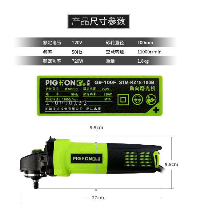 PIGEON Power Tools G9-100F Electric Angle Grinder/Angle Grinder Multifunctional Cutting and Polishing Machine Pigeon Power Tools Official Standard