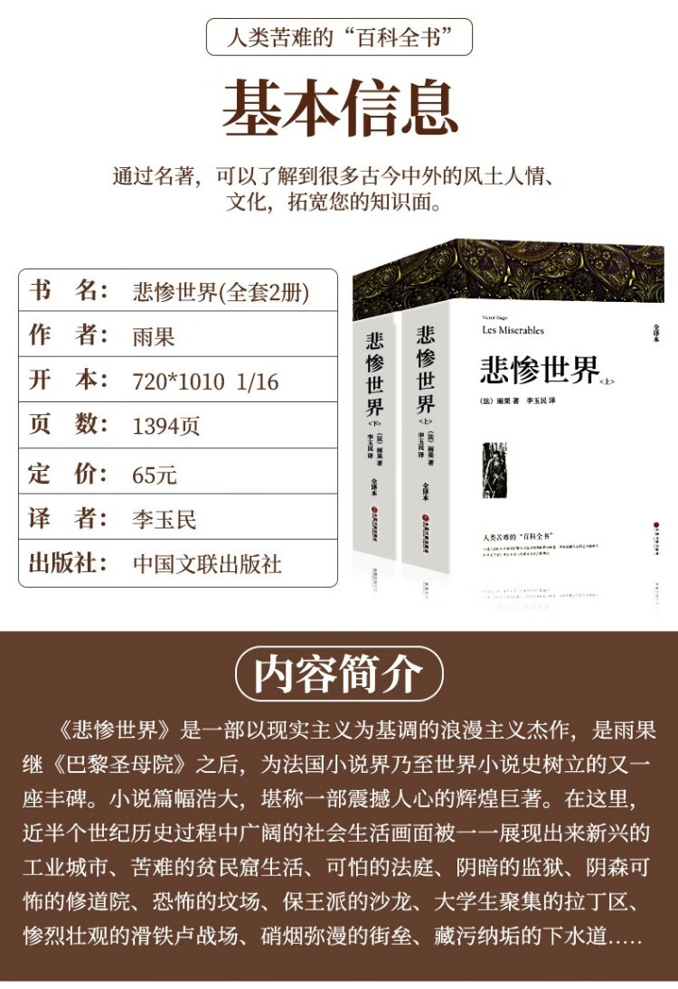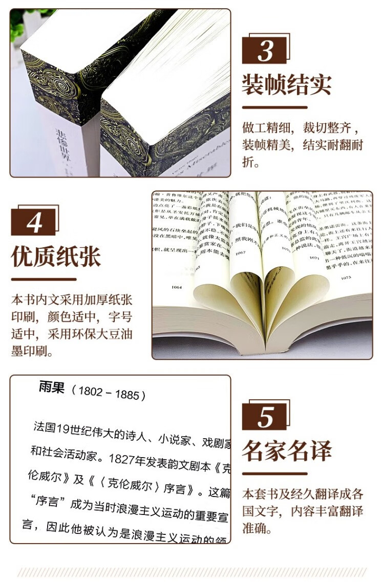 A total of 5 volumes of romantic classic works Notre Dame de Paris + Les Misérables + The Count of Monte Cristo, a grand poem about the ups and downs of fate, human struggle and justice.
