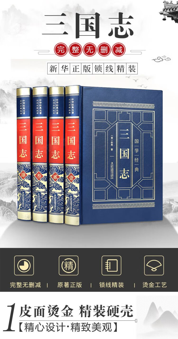 Chronicles of the Three Kingdoms 4 volumes, complete and unabridged vernacular translation, hardcover genuine edition, written by Chen Shou, classics of ancient Chinese studies, historical documents, biographies of Wei, Shu and Wu
