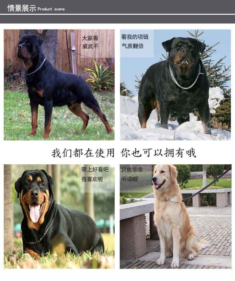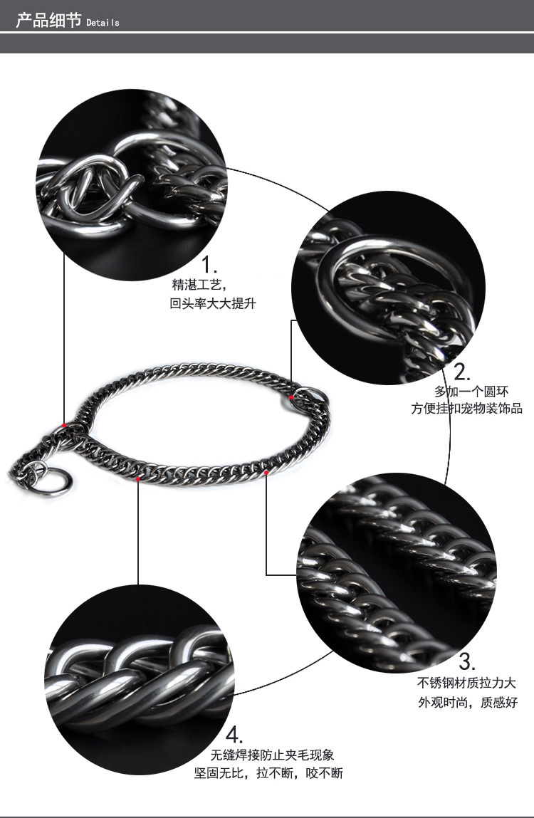 Chukchi (CHUKCHI) Double Ring Binocular Necklace for Large Dogs Pets Stainless Steel P Chain Dog Chain Dog Collar Home Training Collar Double Ring Luxury Silver 55cm *2.8mm Double Large Dog