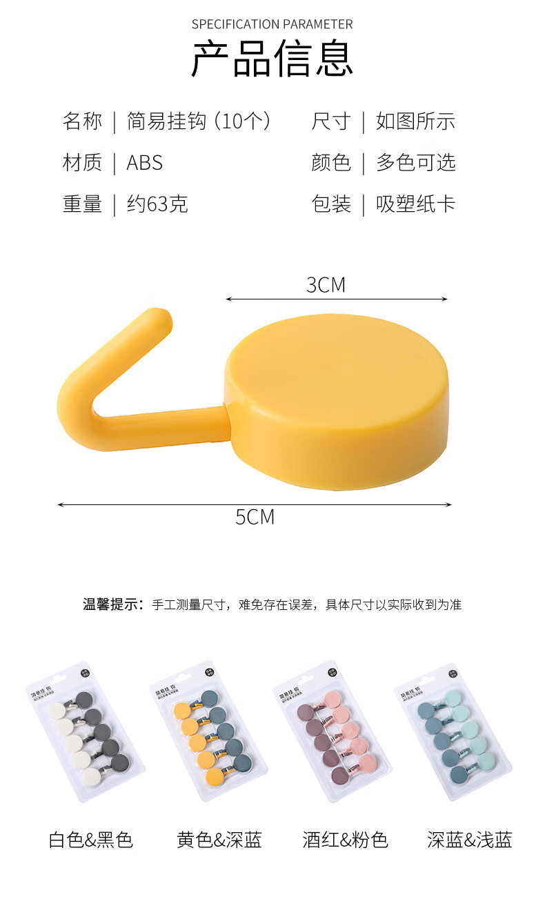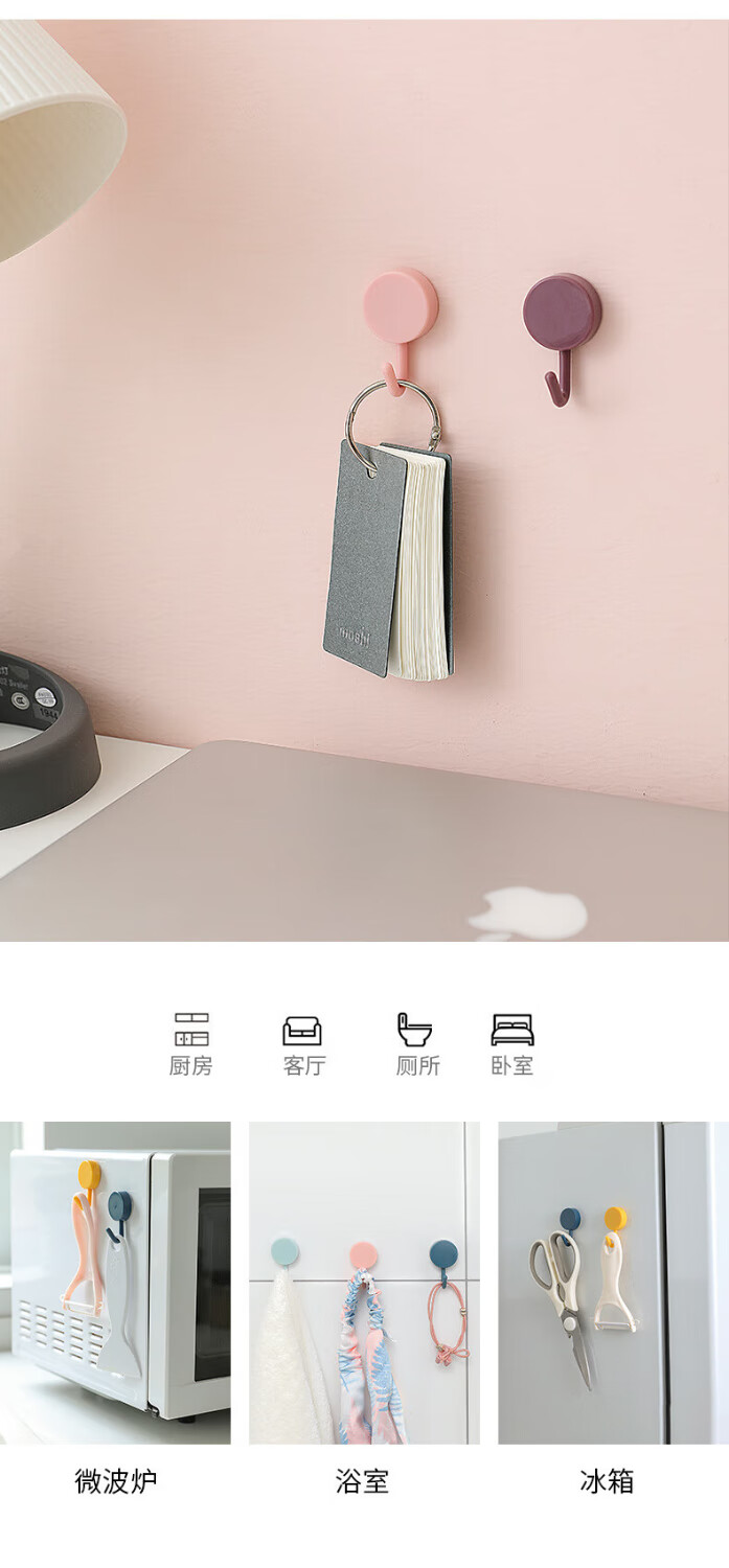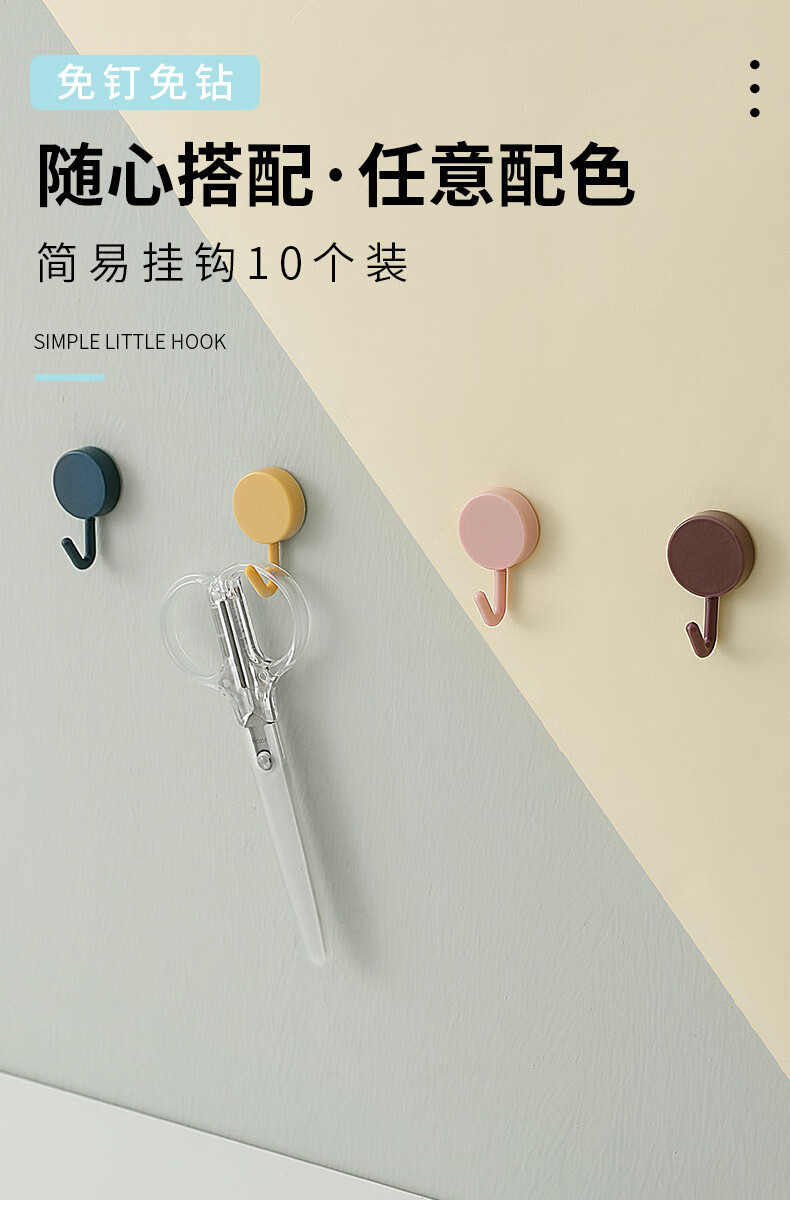 Adhesive hooks, strong adhesive hooks, no need to punch holes, traceless adhesive transparent wall hook stickers, random colors, 10 pieces