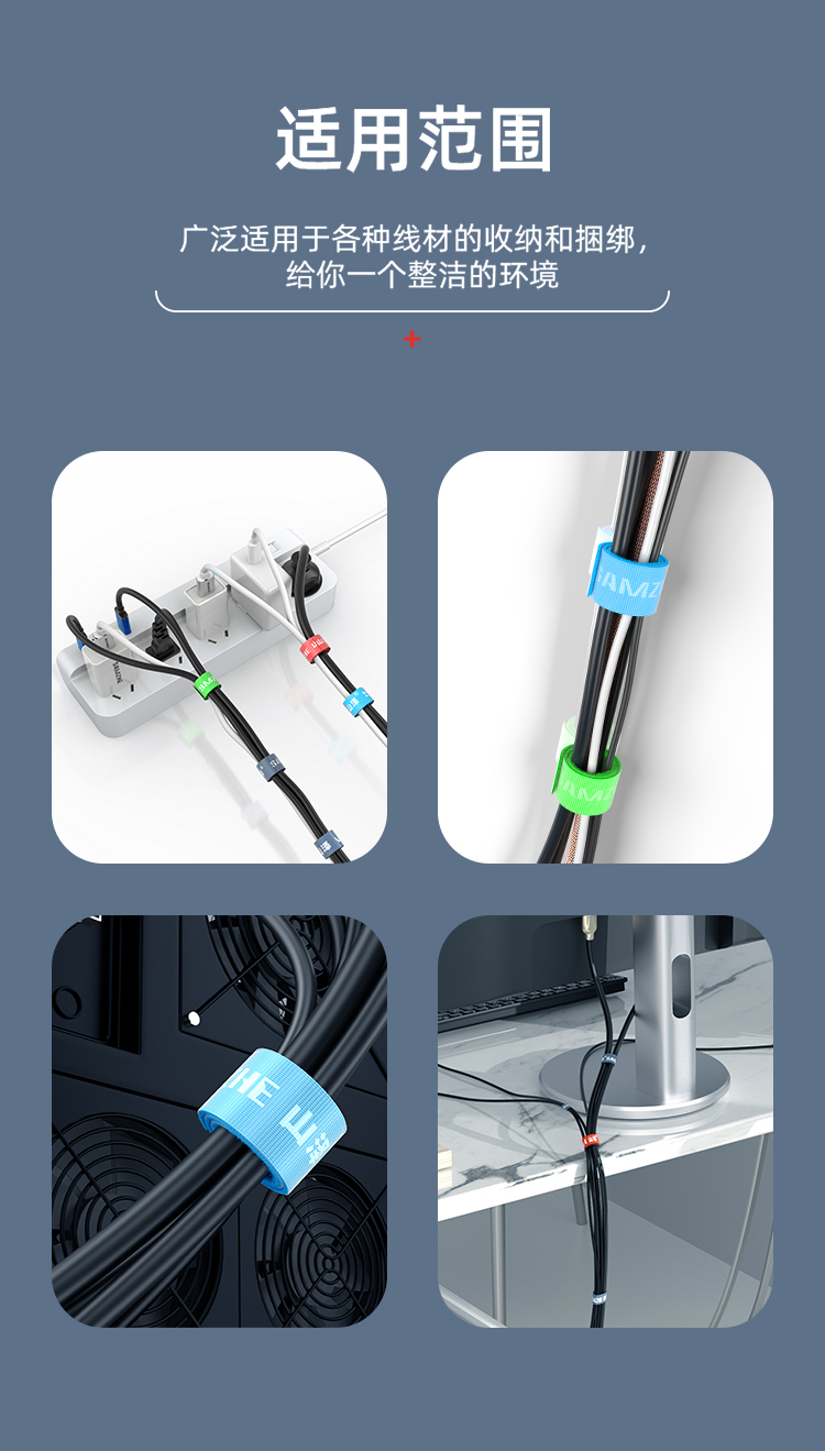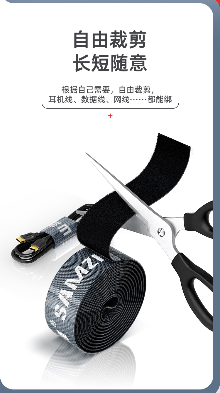 SAMZHE Velcro Free-cut Computer Cable Organizer Tying/Bundling/Tie/Wire Strap Back-to-Back Organizing Belt 20*1000mm Blue MST-09