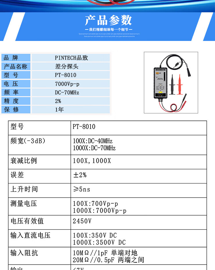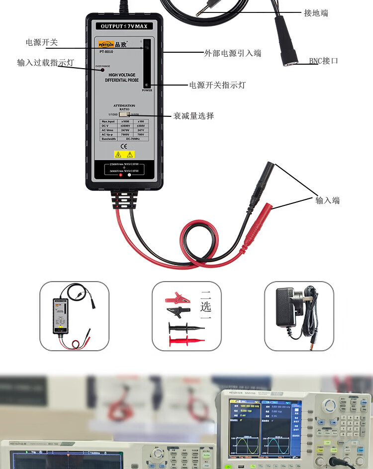 PINTECH PT-8010 active differential probe 7000V 70MHz oscilloscope high voltage differential test probe