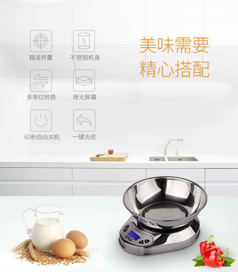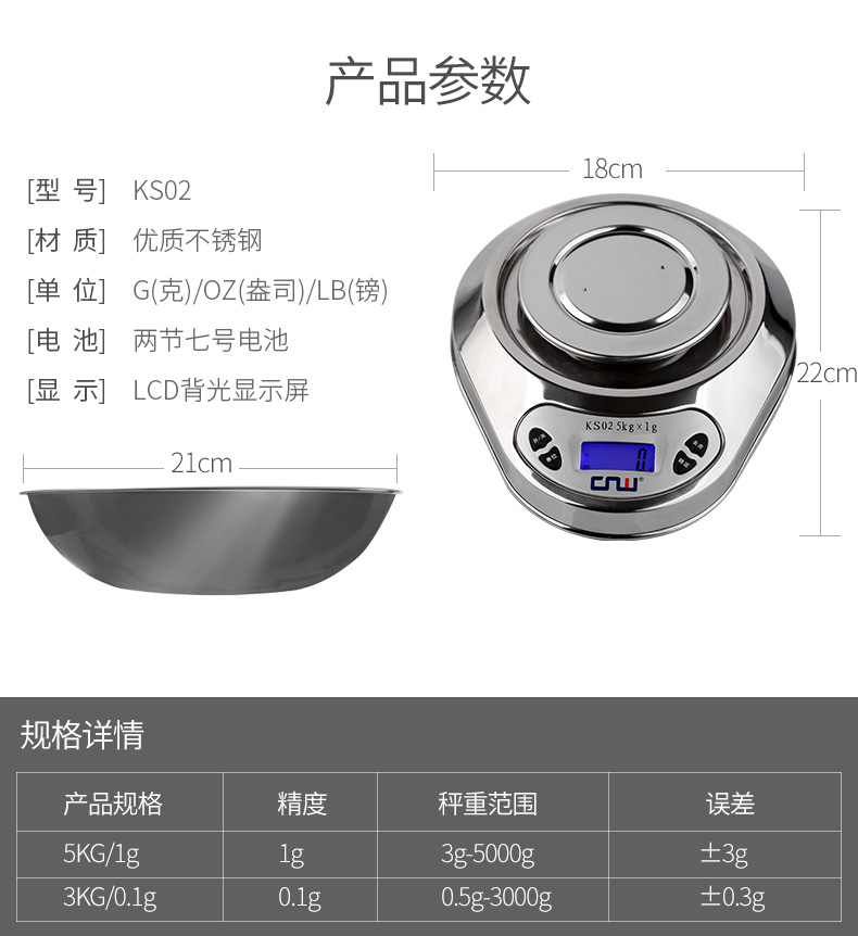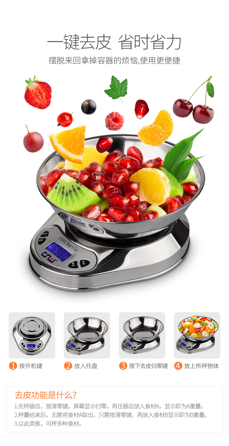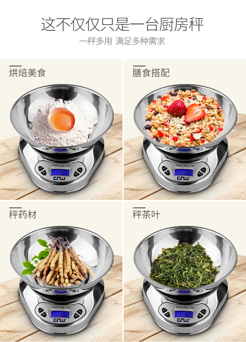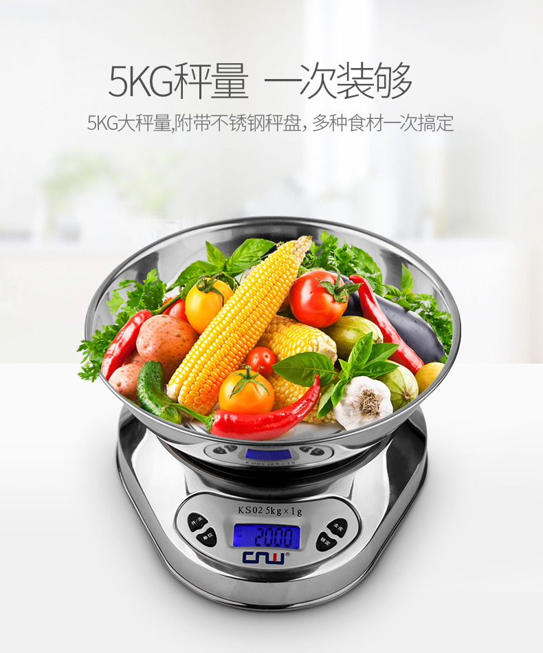 CNW stainless steel kitchen scale baking scale kitchen electronic scale household food scale 5KG 5kg battery model