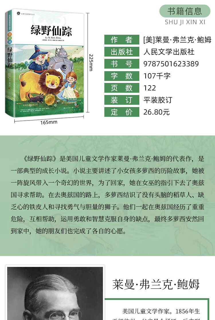 The Wizard of Oz, fairy tale classic extracurricular book for primary school students in grades 3, 4 and 5, holiday reading list