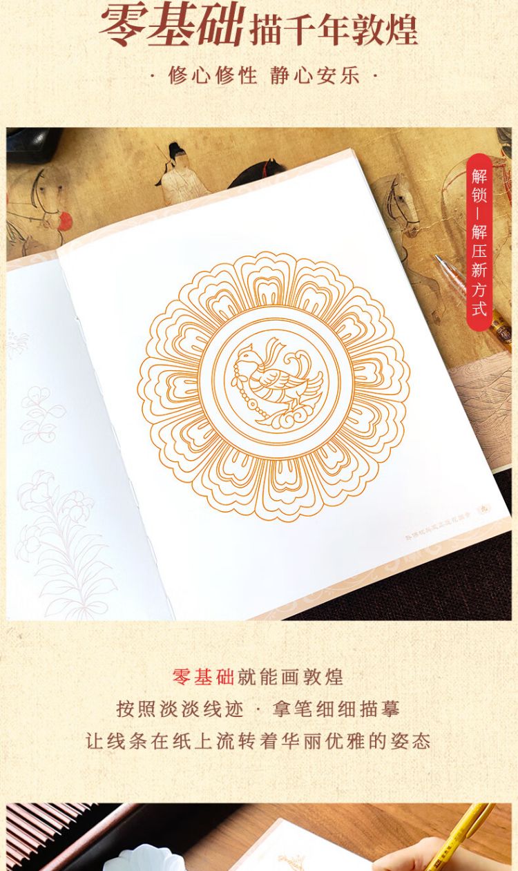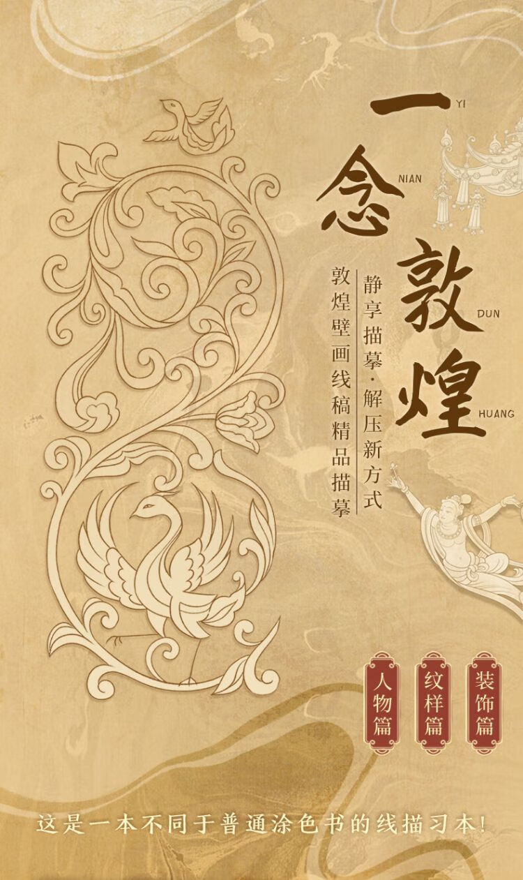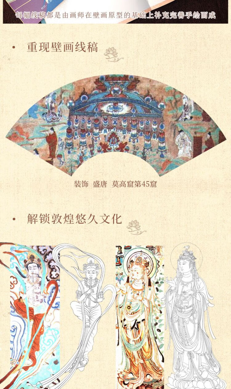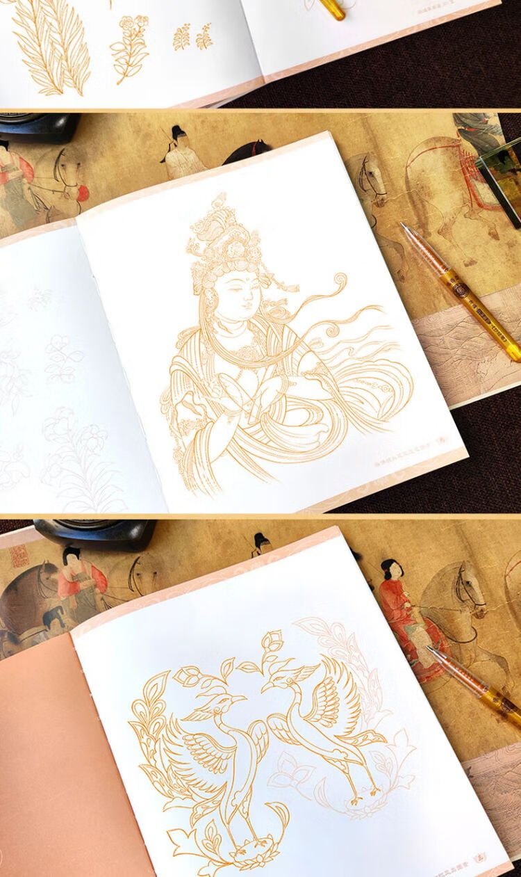 Free gold tracing pen, A Thought of Dunhuang - Decoration Dunhuang Mural Line Drawing Copy Book with Sandalwood Gold Painting Pen, Dunhuang Line Drawing Book, Adult Meditation Decompression Coloring Book, Feitian Figure Decoration Pattern Copying Picture Book, Also See Dunhuang Line Drawing Book, Dunhuang Pattern White Drawing Book, Drawing Book