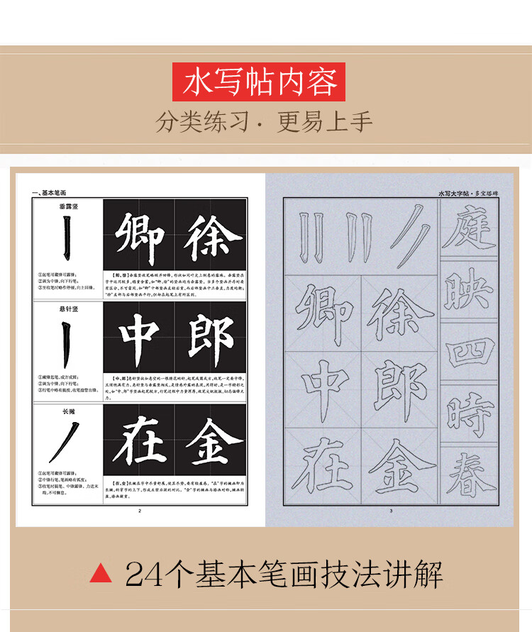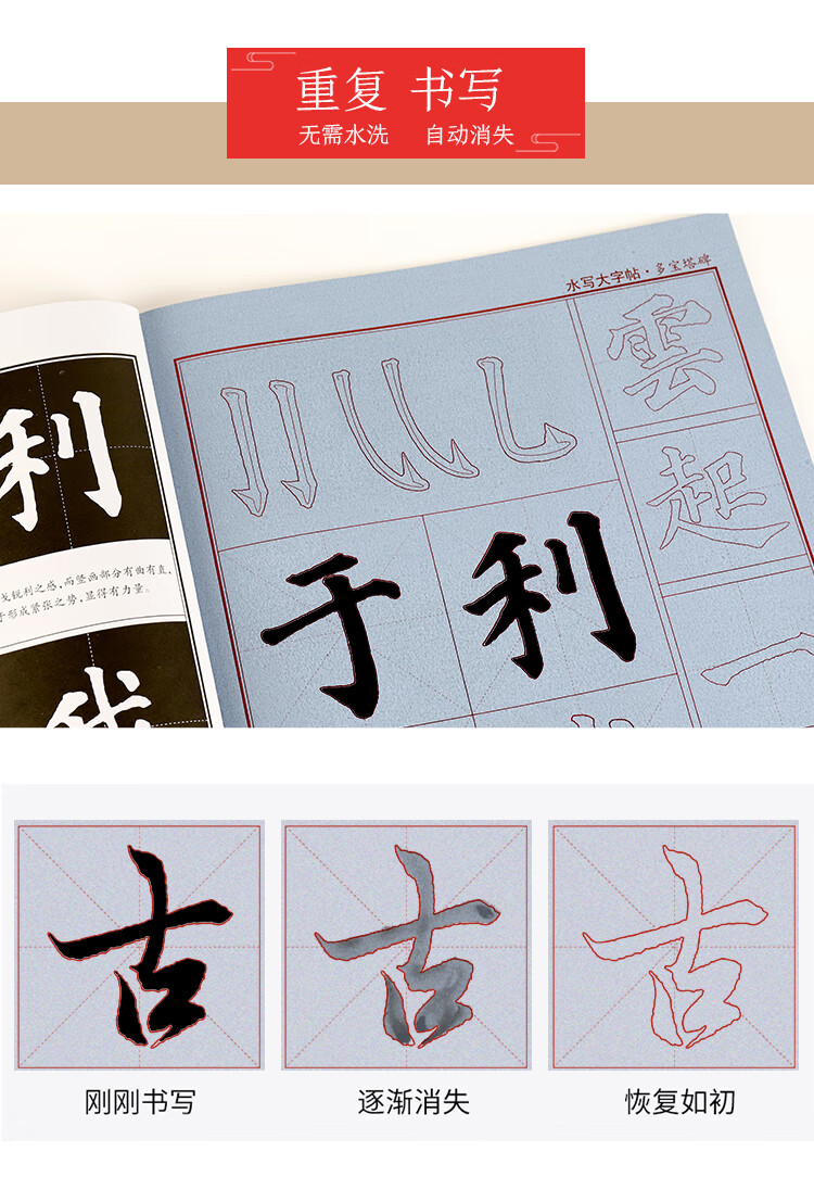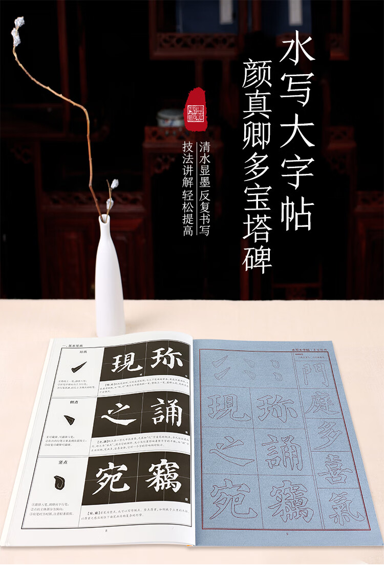 Ink dot copybook, Yan Zhenqing Duo Pagoda Monument water writing large copybook, beginner's calligraphy brush special thickened water writing cloth, clear water copying, multiple writing without washing, student practice calligraphy copybook