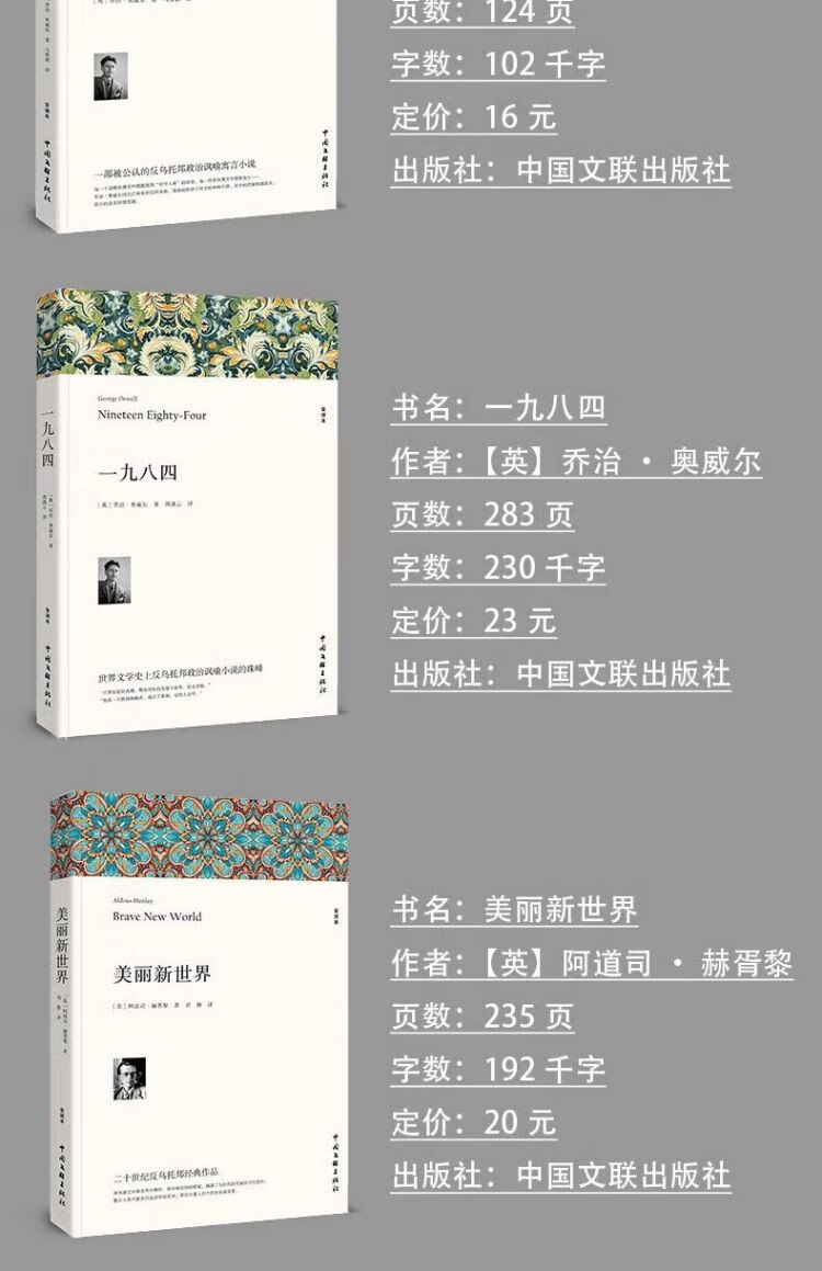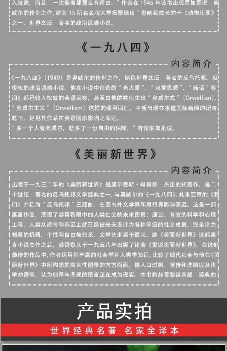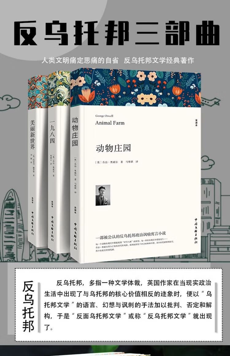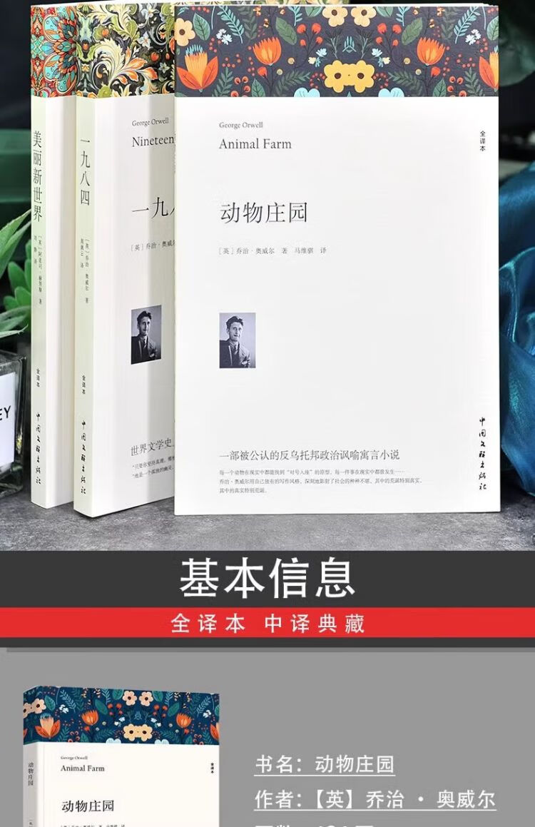 1984+Animal Farm+Brave New World, 3 volumes in total, the 1984 Animal Farm dystopian trilogy written by George Orwell, a world famous work of foreign literature