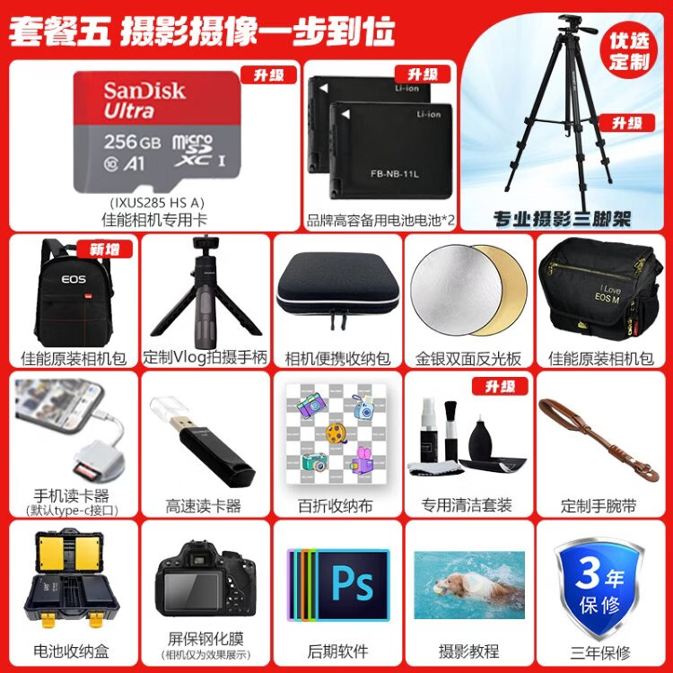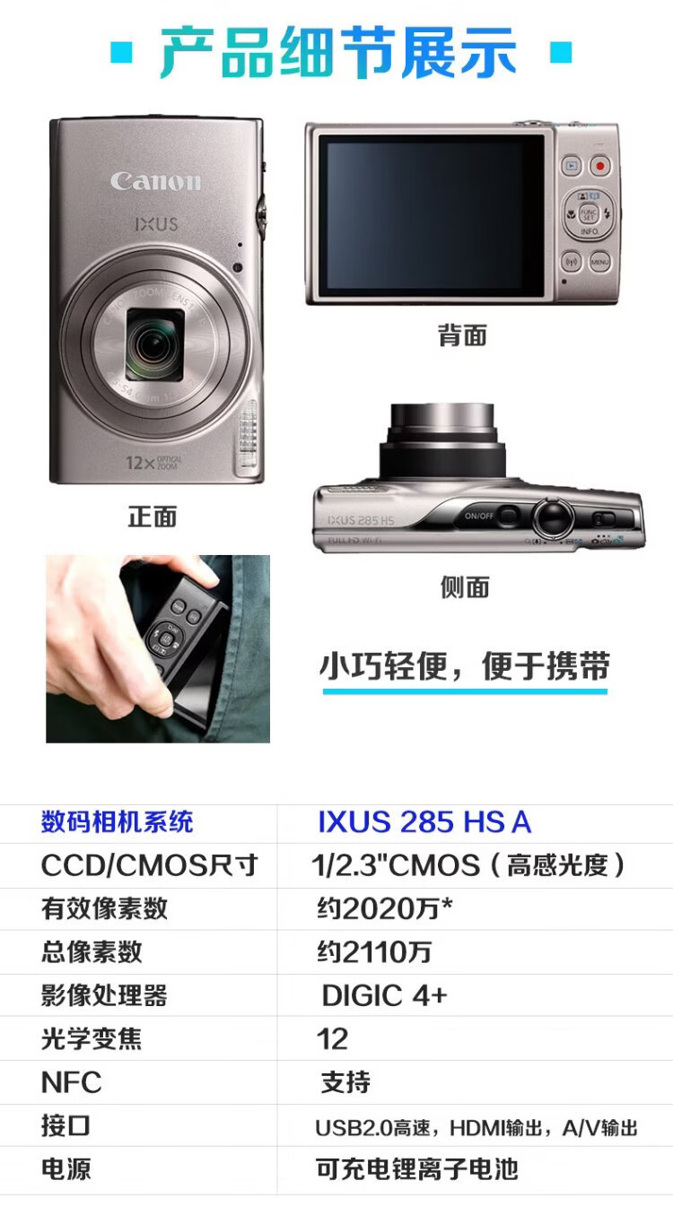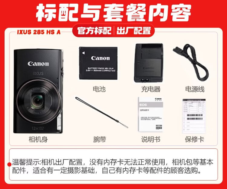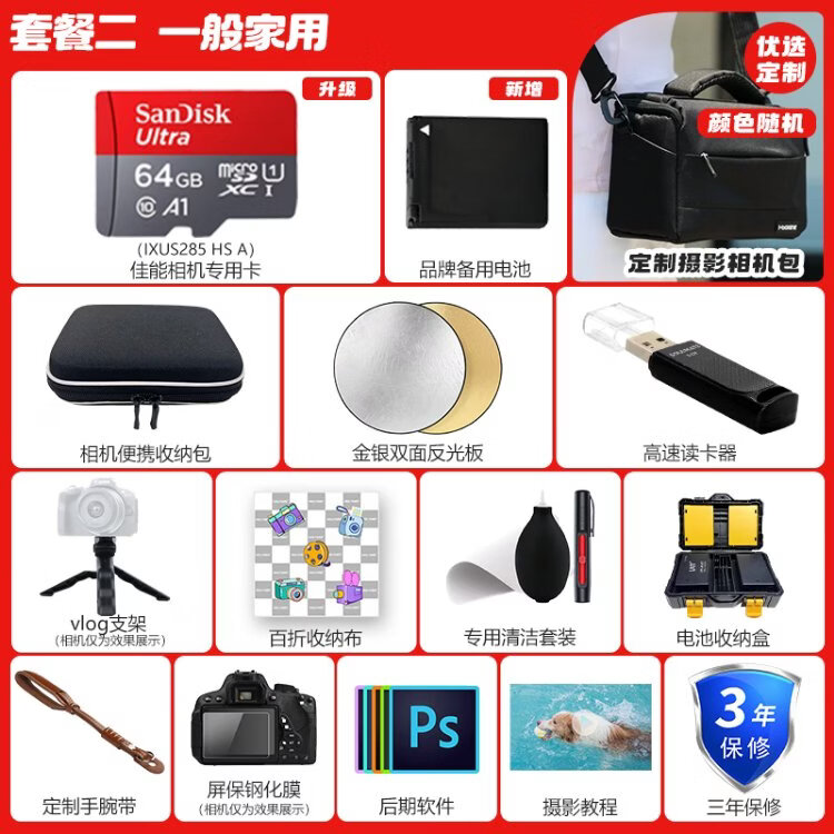 Canon Canon camera ixus285A digital camera card machine camera student entry-level compact portable home camera Canon IXUS285 HS A black package two upgrade 64G card, portable storage bag, brand spare battery
