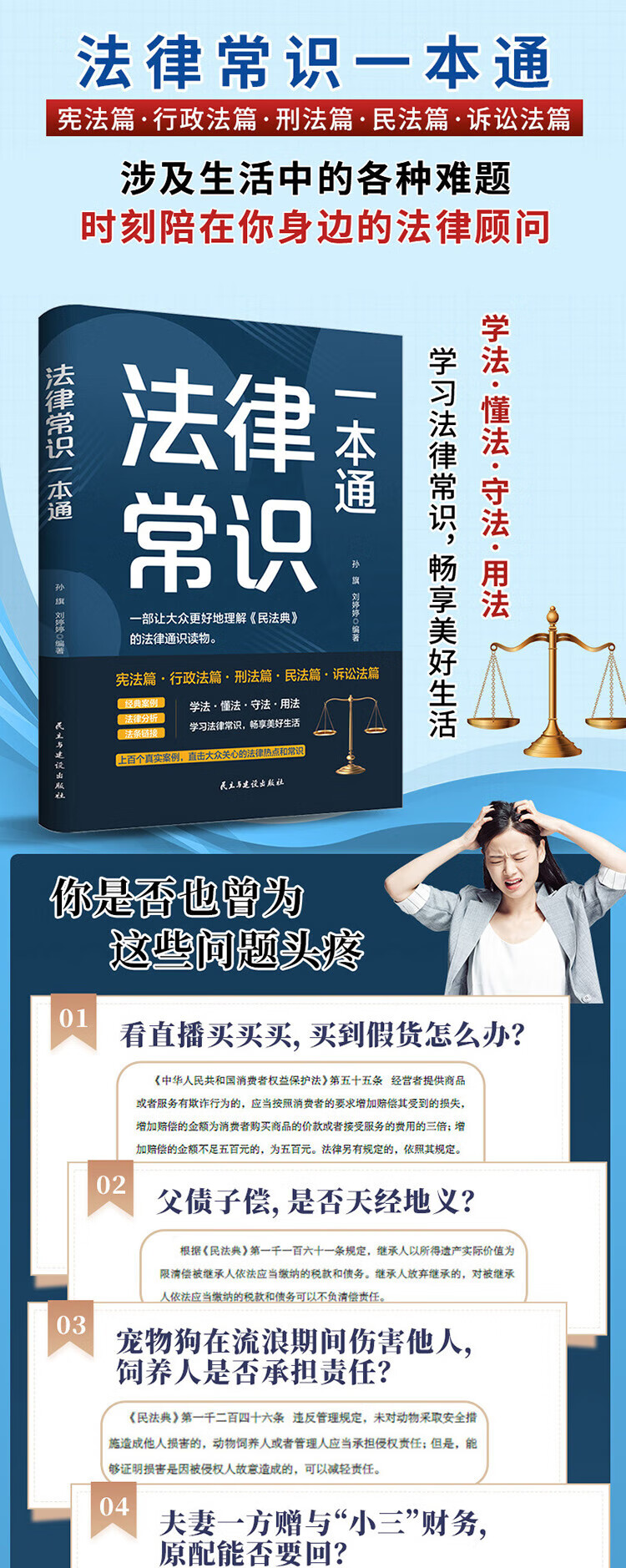 2 volumes in total, Civil Code + Legal Knowledge, Civil Code of the People's Republic of China, legal books, legal knowledge, contract law, property rights law, marriage, legal personality rights, inheritance rights, tort liability