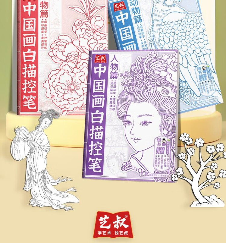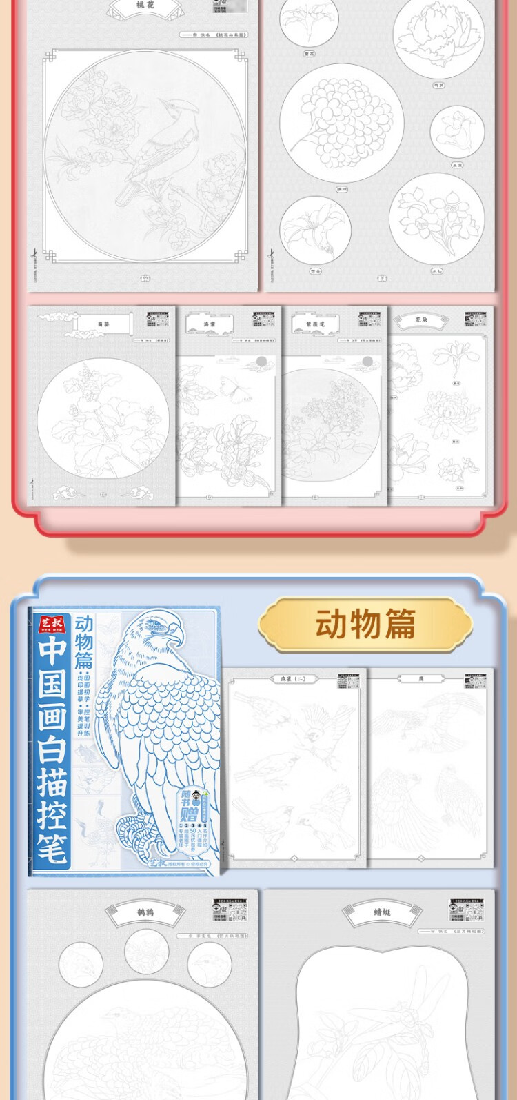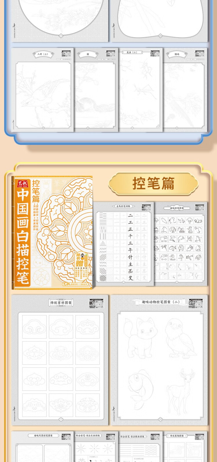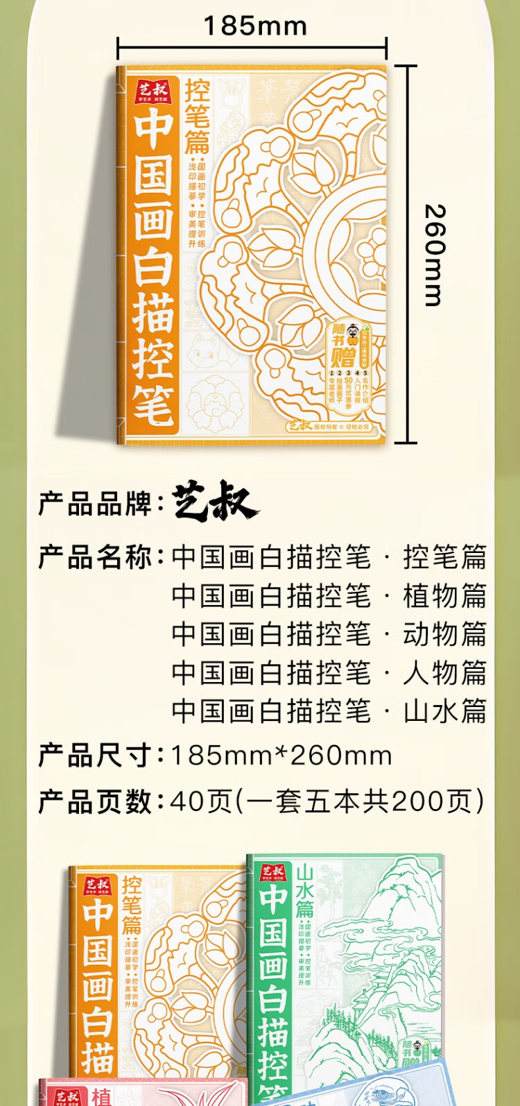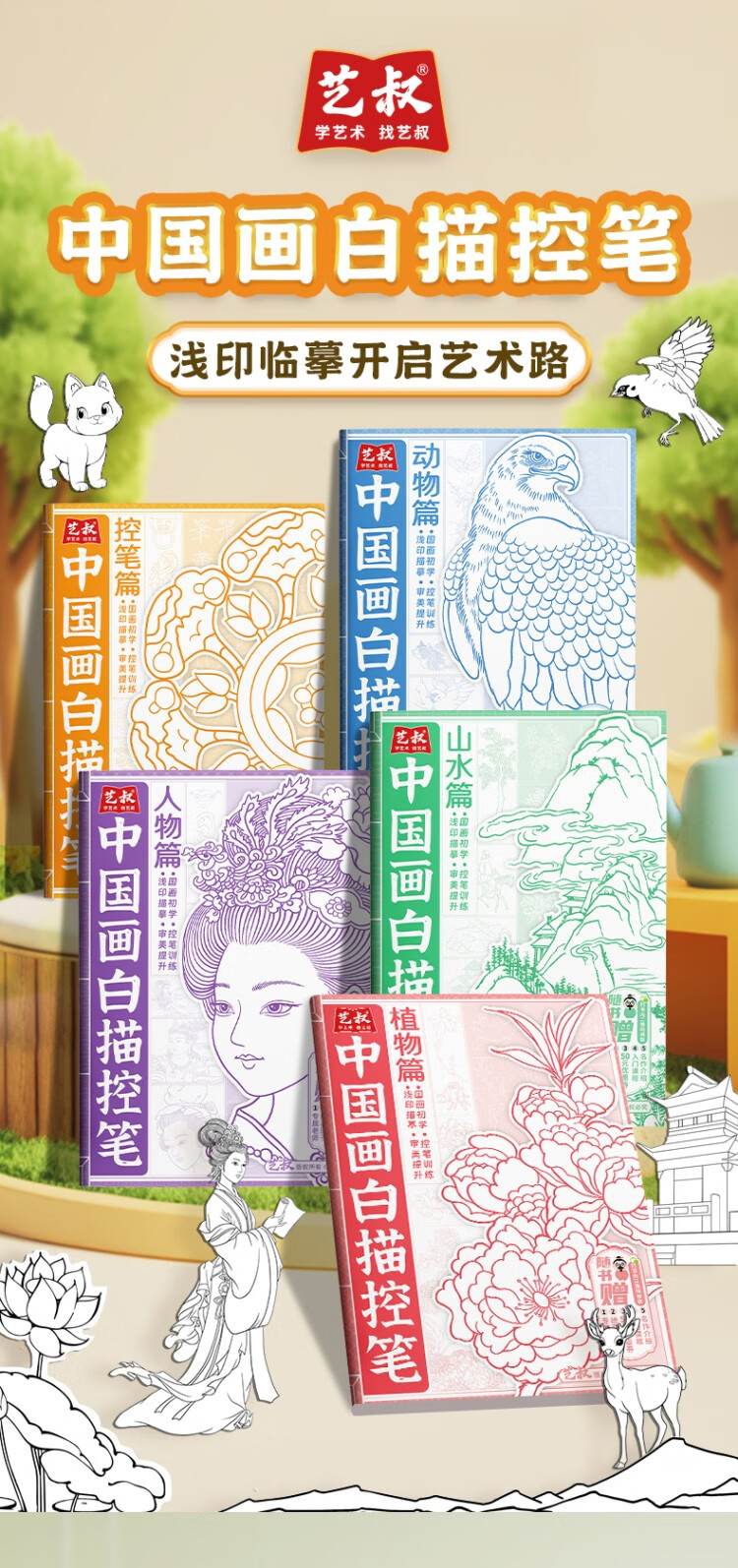 A total of 5 volumes of Chinese painting white tracing pen figures + animals + plants + pen control + landscapes basic beginners painting copy tutorial book teaching material picture album picture book