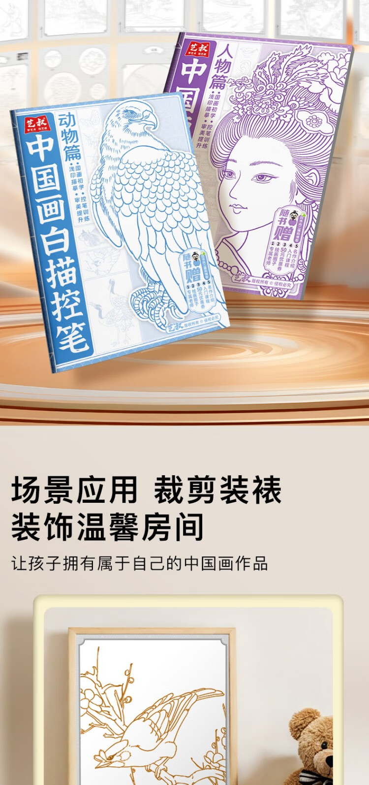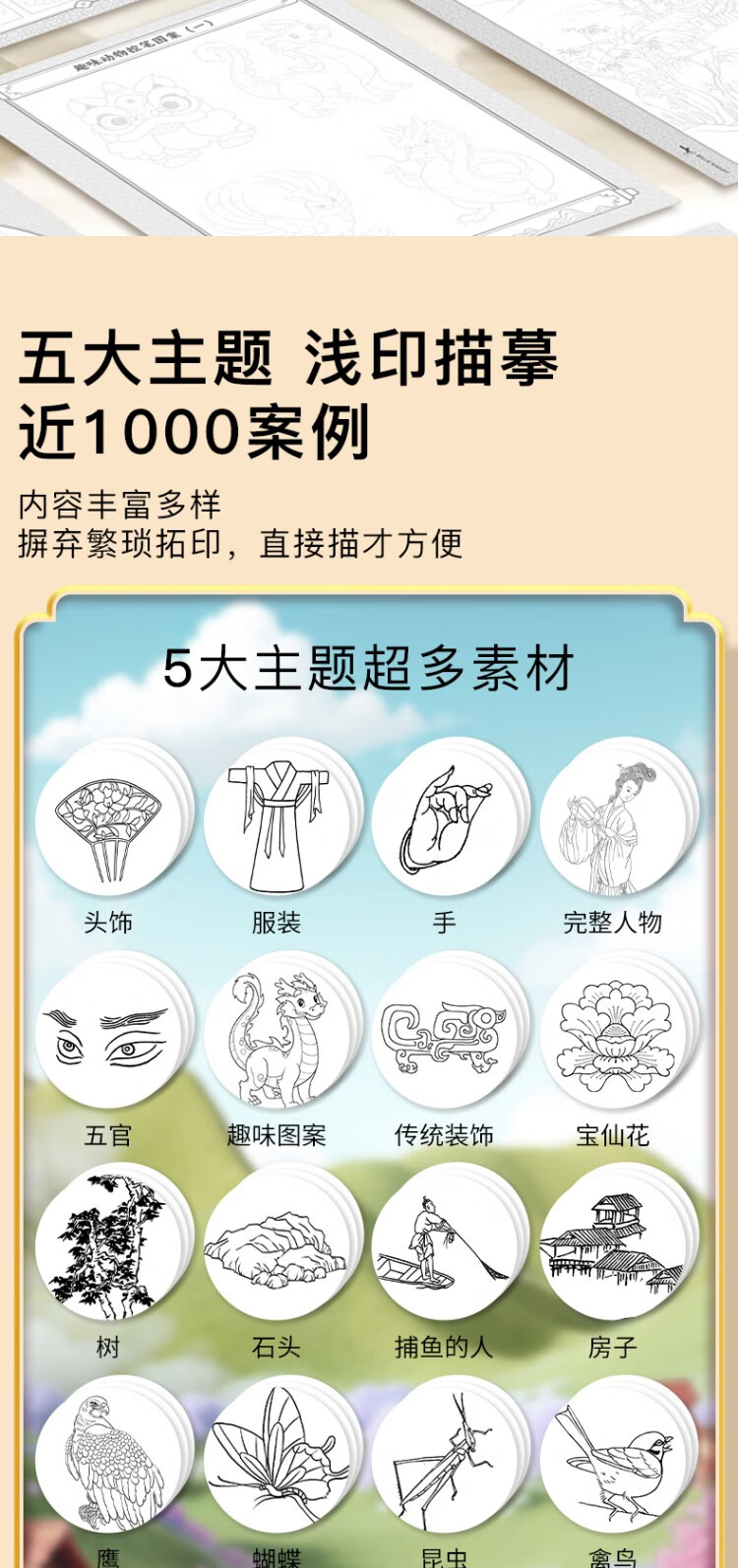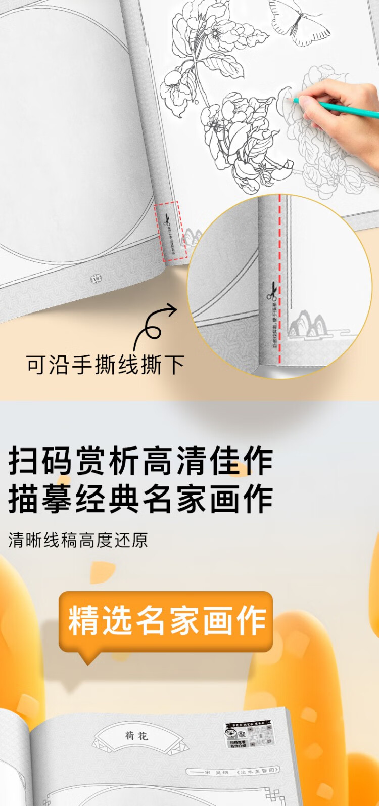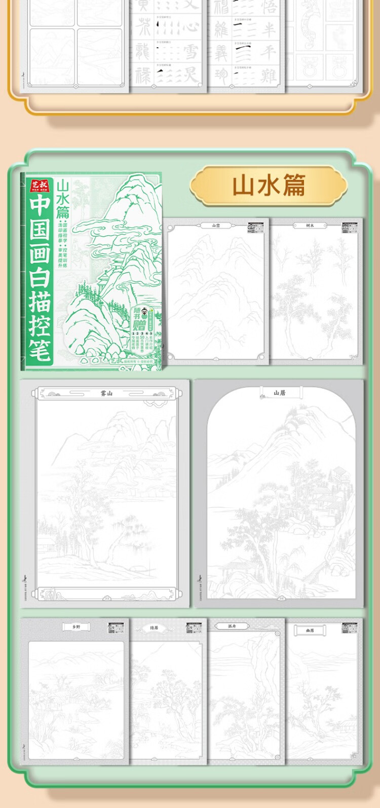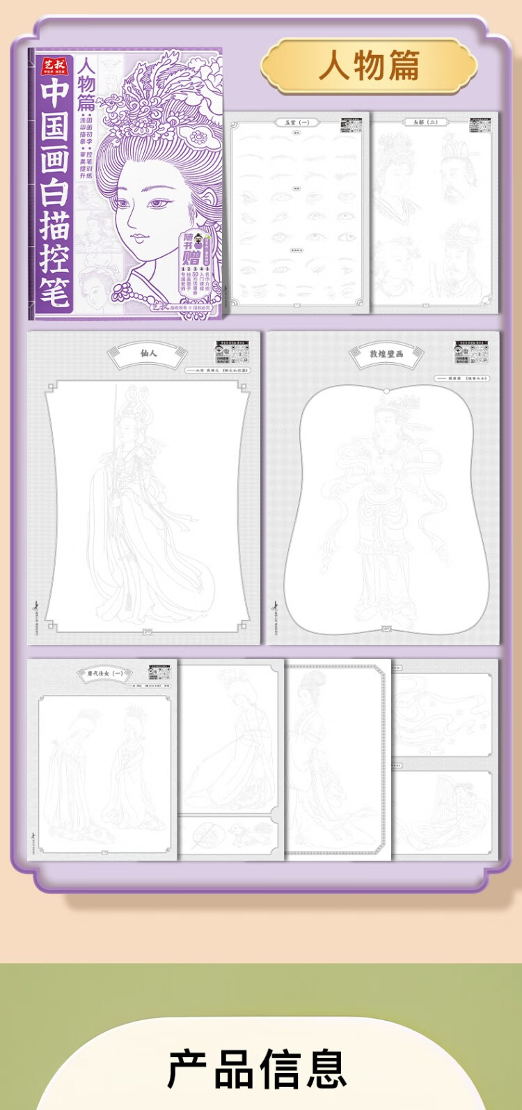 A total of 5 volumes of Chinese painting white tracing pen figures + animals + plants + pen control + landscapes basic beginners painting copy tutorial book teaching material picture album picture book