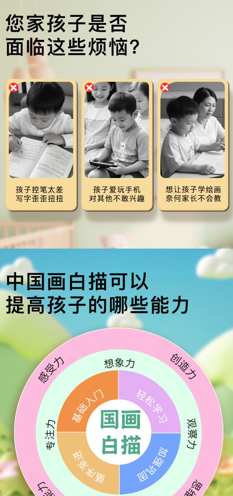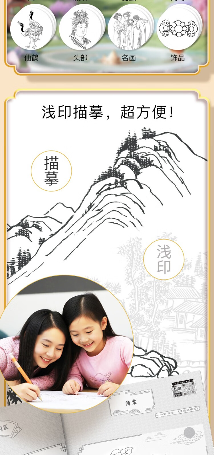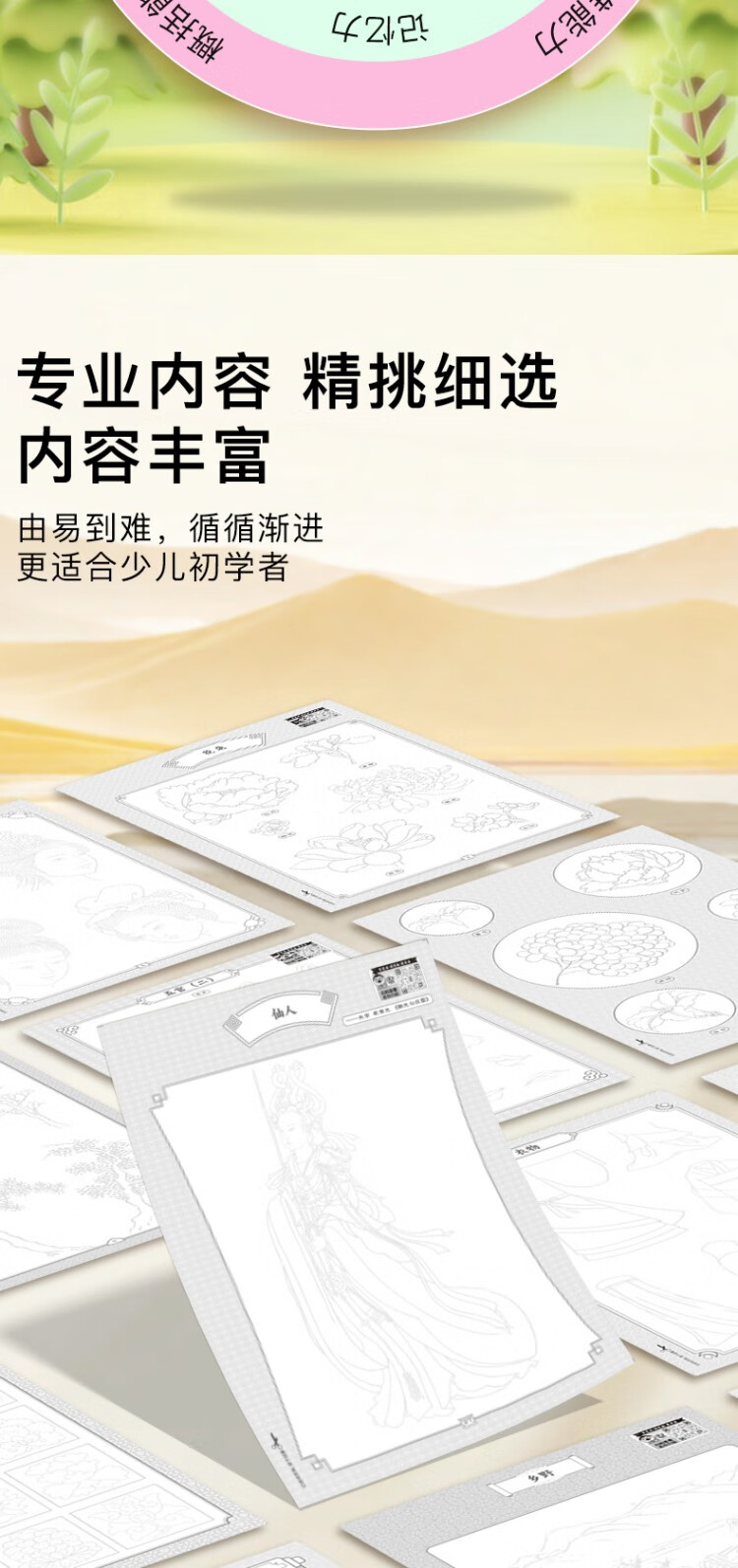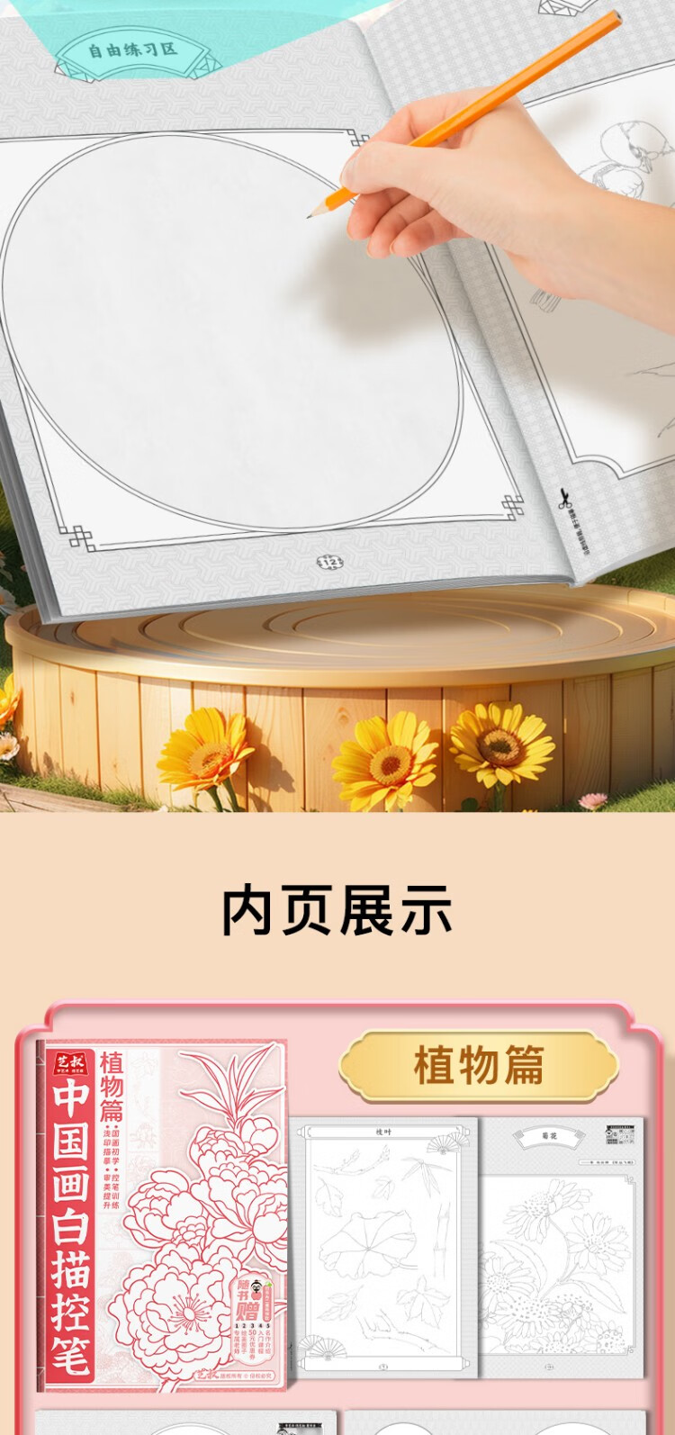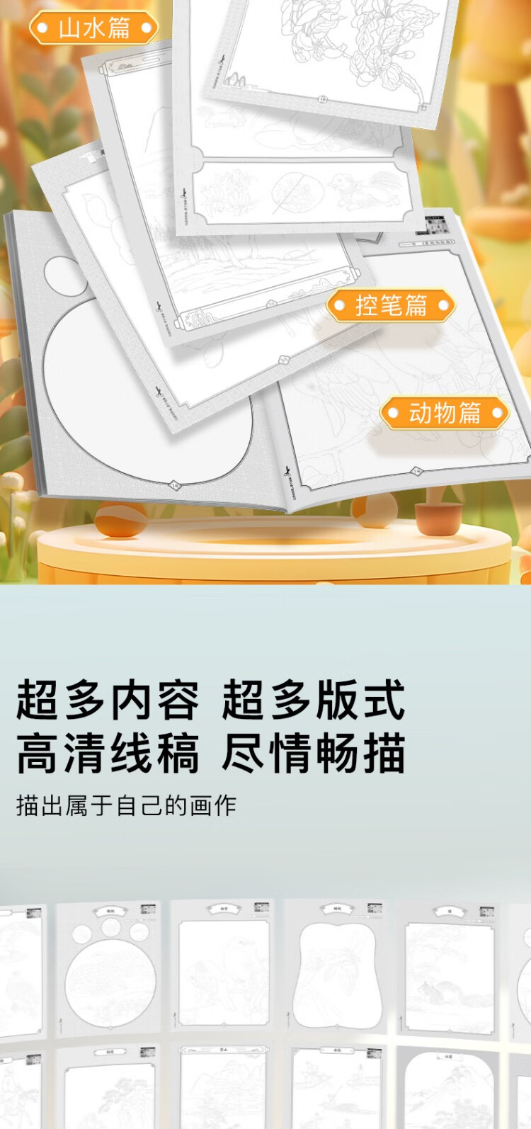 A total of 5 volumes of Chinese painting white tracing pen figures + animals + plants + pen control + landscapes basic beginners painting copy tutorial book teaching material picture album picture book