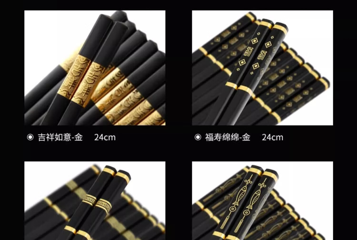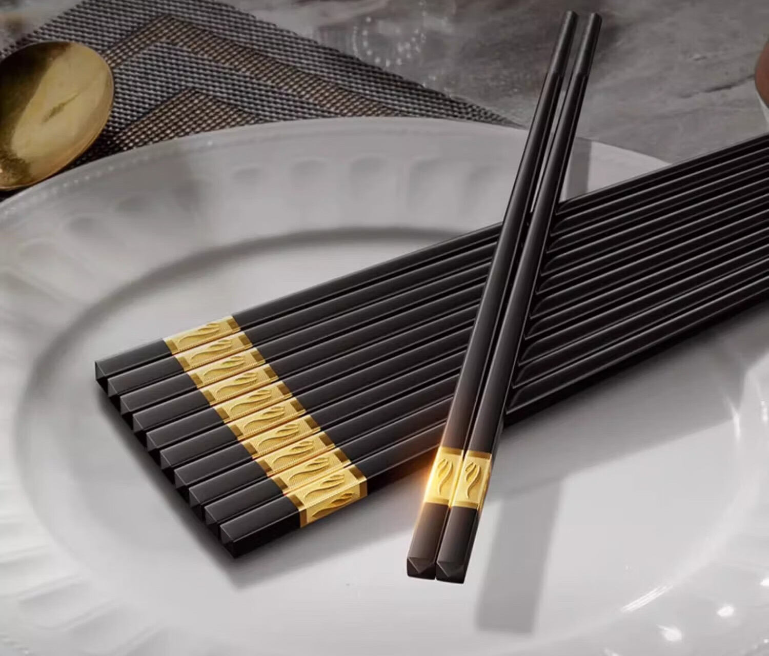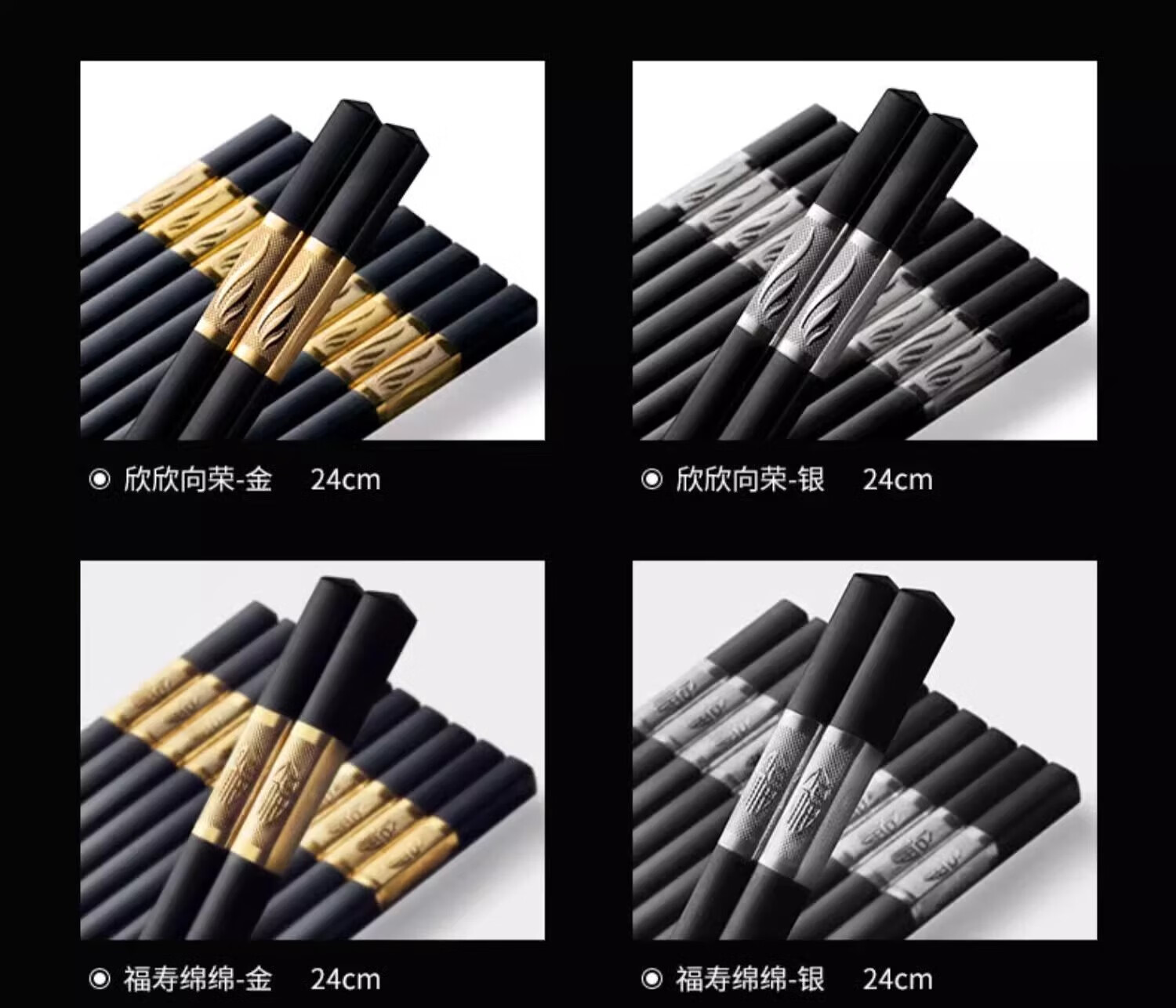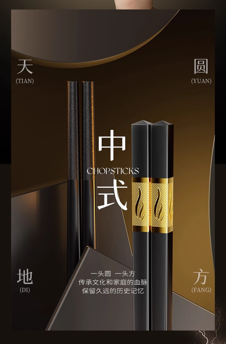 Double gun alloy chopsticks household stainless steel-free hotel high-end public chopsticks paint-free and wax-free tableware set 10 pairs 90% selection Fushou Mianmian-gold 24CM