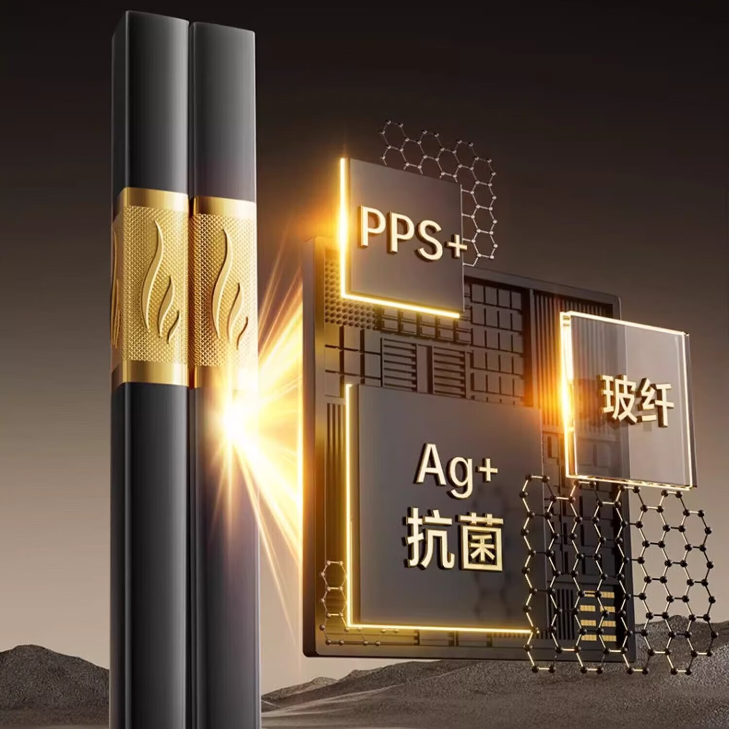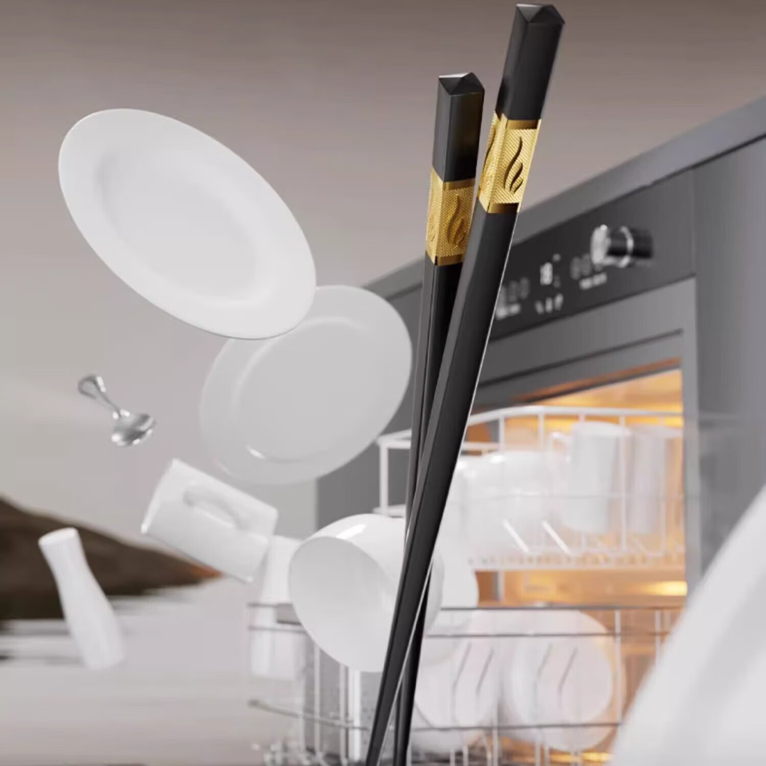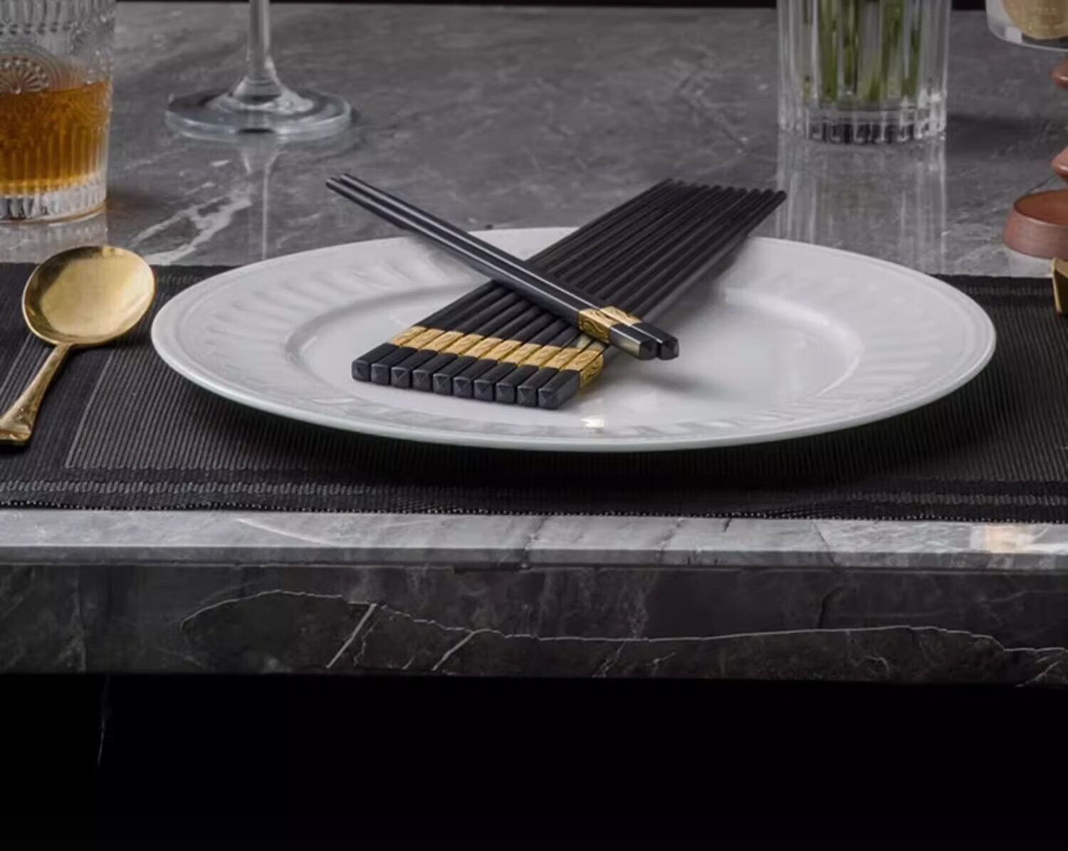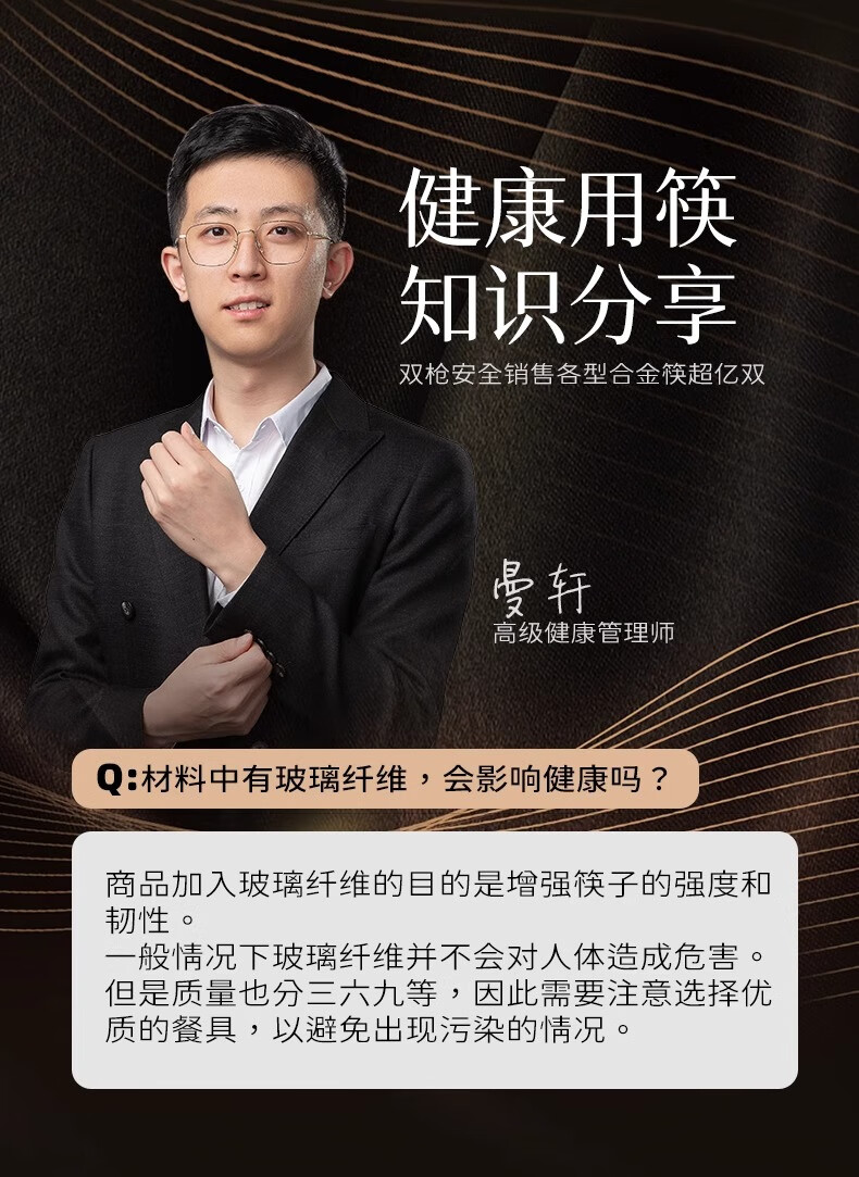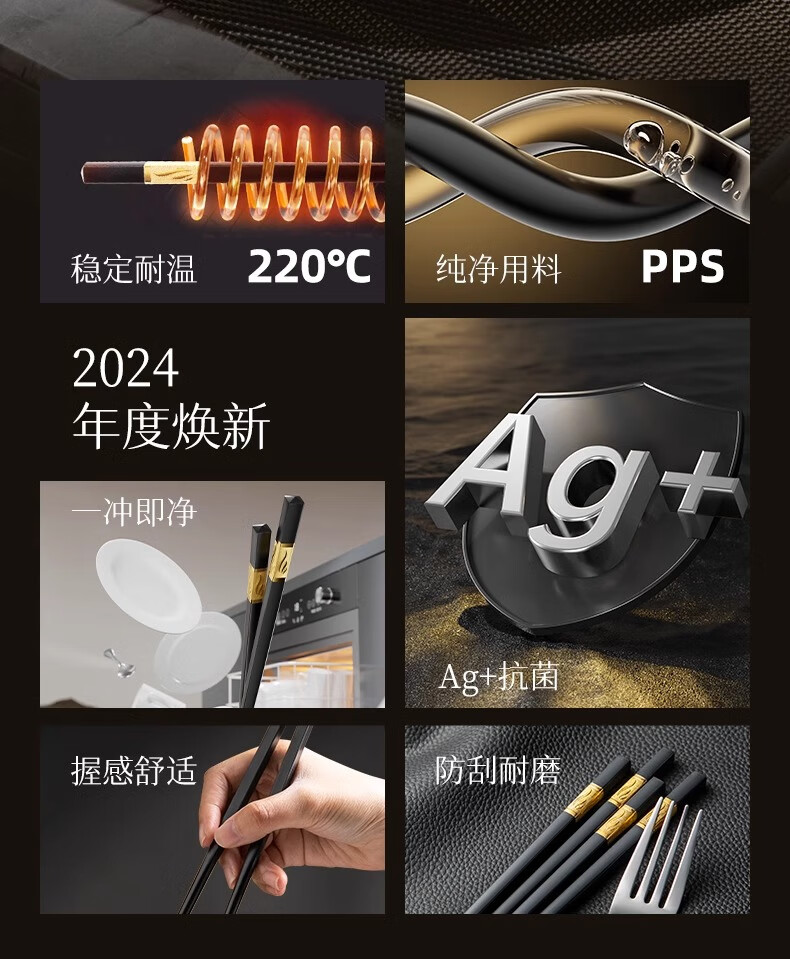 Double gun alloy chopsticks household stainless steel-free hotel high-end public chopsticks paint-free and wax-free tableware set 10 pairs 90% selection Fushou Mianmian-gold 24CM