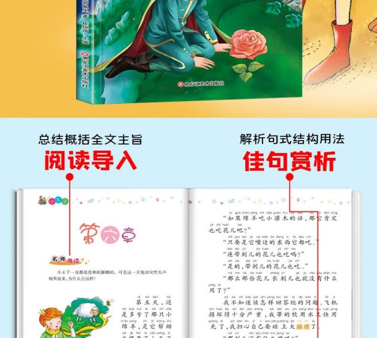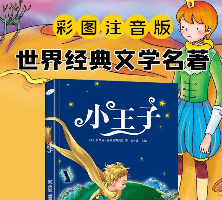 The Little Prince, color picture phonetic version, synchronous extracurricular reading book for primary school students, first, second and third grade primary school students, extracurricular reading book, world classic children's literature