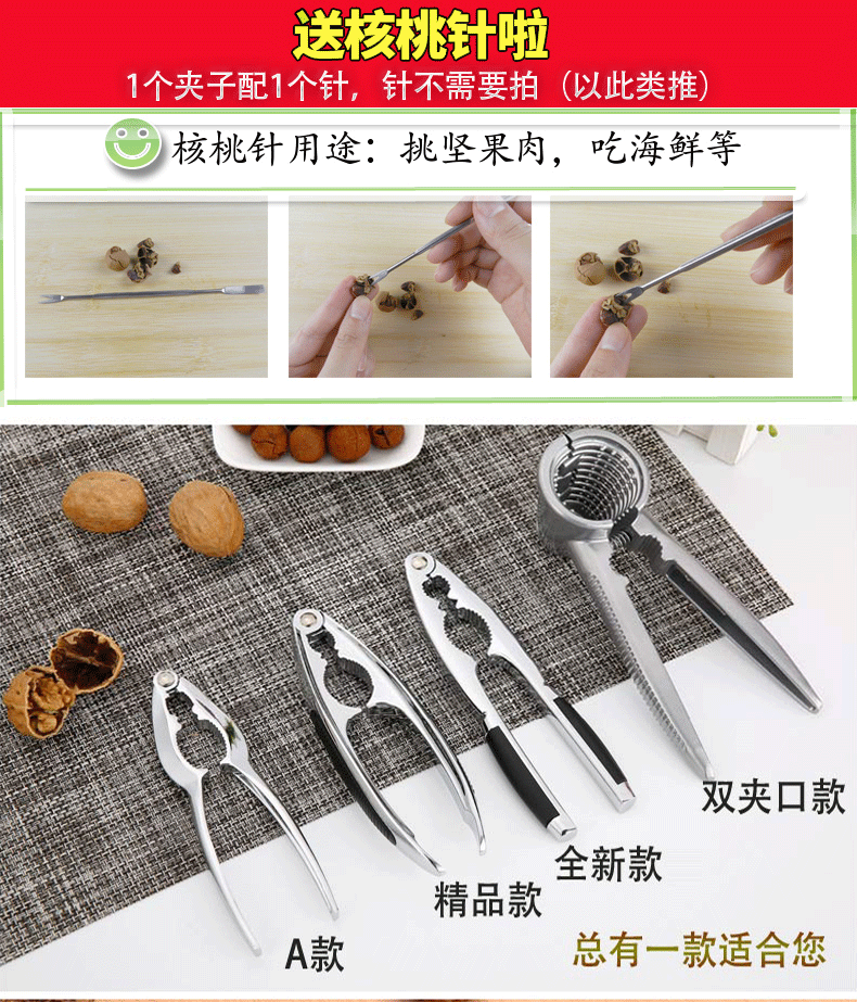 Weixi Walnut Clamps, Pine Nuts and Hazelnut Pliers, Shelling and Opening Nut Clamps, Walnut Peeling Tools, Walnut Nut Pliers, Double Mouth Model + Brand New Model + Walnut Needle