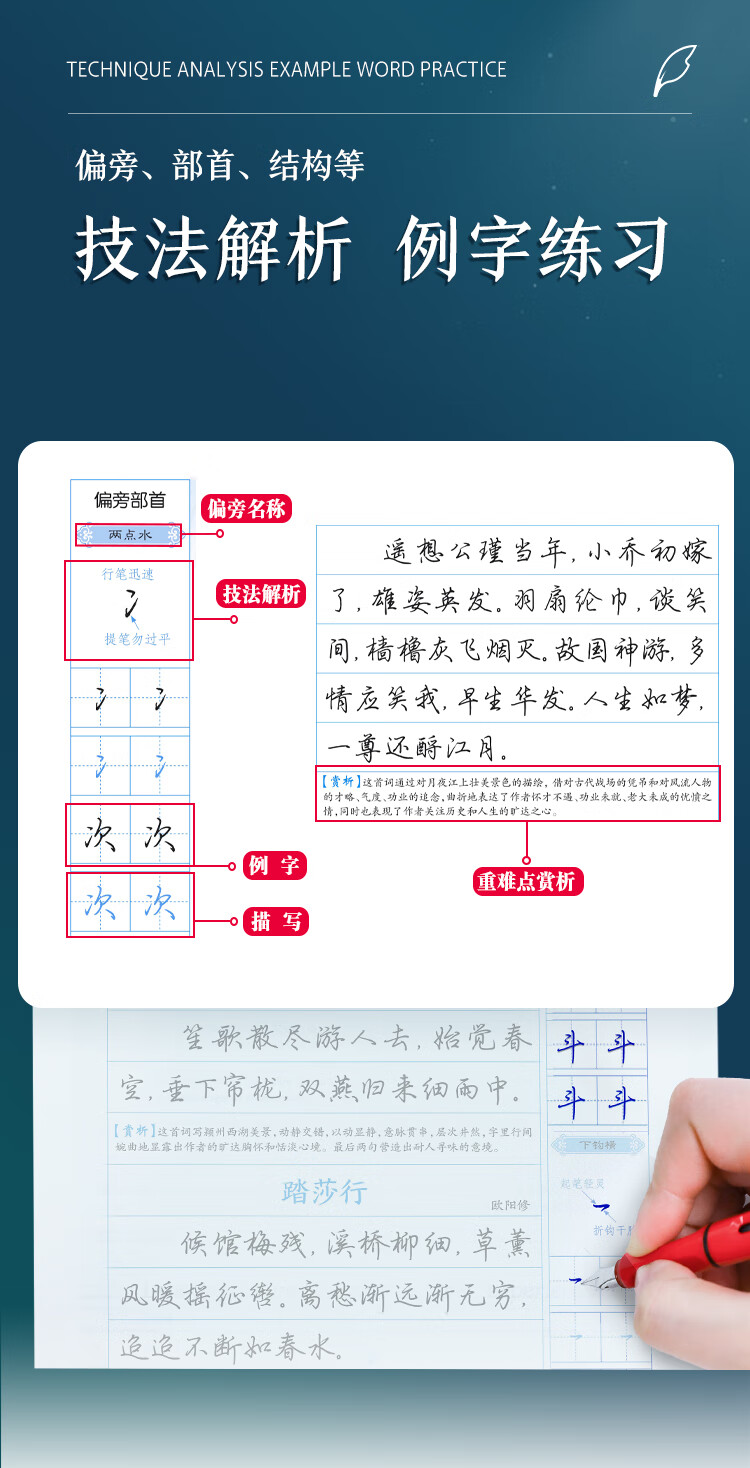 Ink dot copybook, regular script set of 3 volumes, classic culture, three hundred famous Tang poems and Song lyrics, regular script practice copybook, high school college student, adult civil servant postgraduate entrance exam, copybook reading carnival