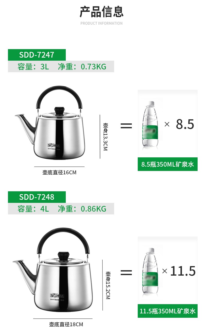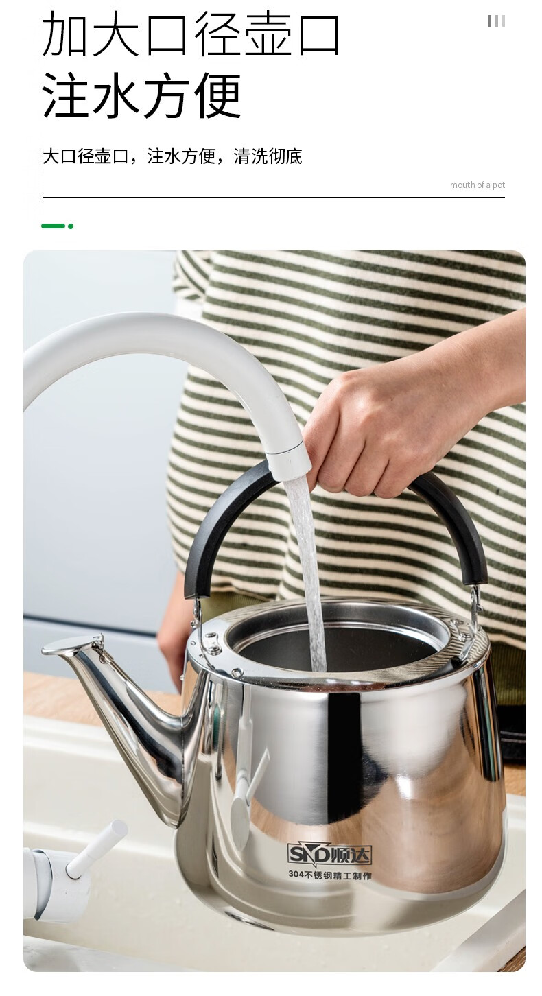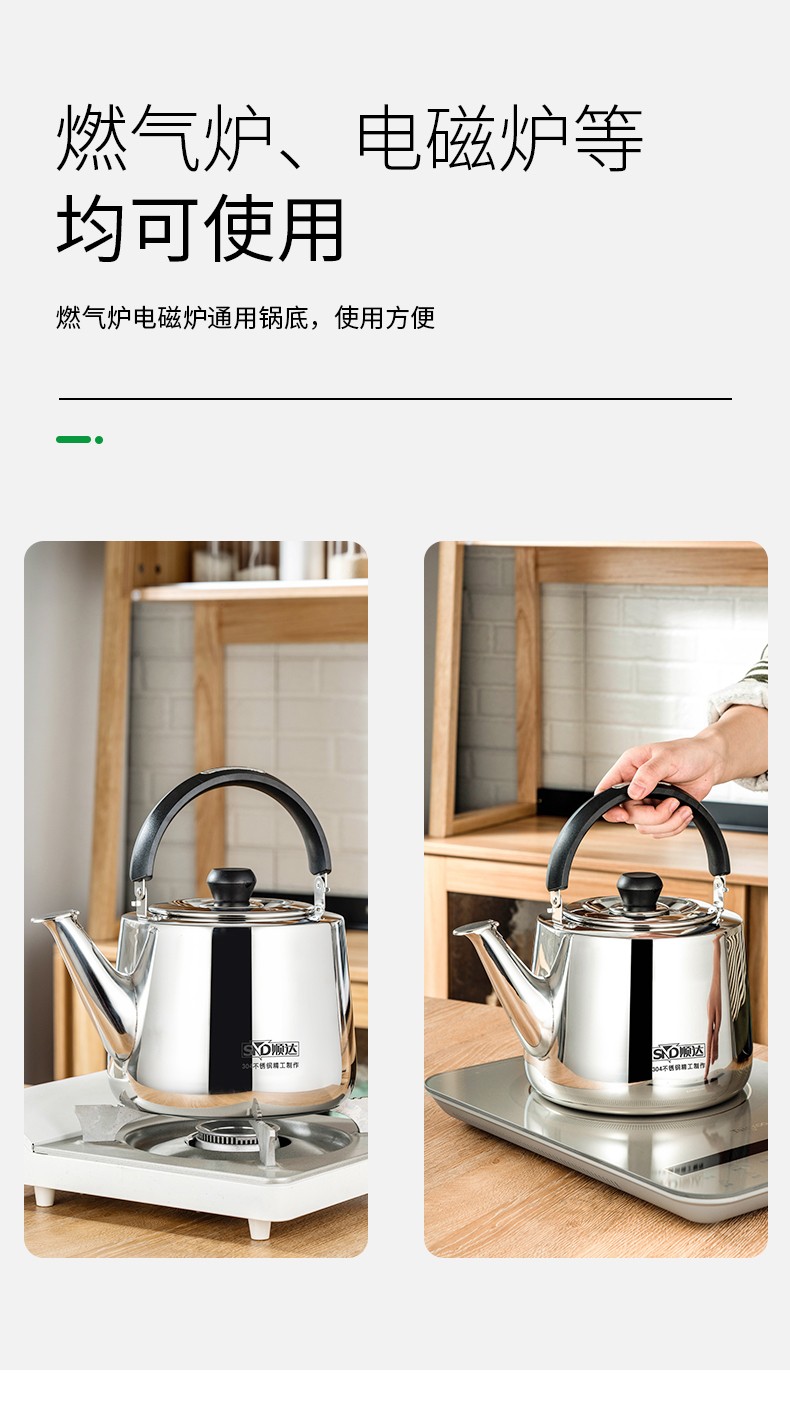 Shunda (SND) 304 stainless steel kettle kettle thickened straight piano kettle universal gas induction cooker SDD-7248 4L