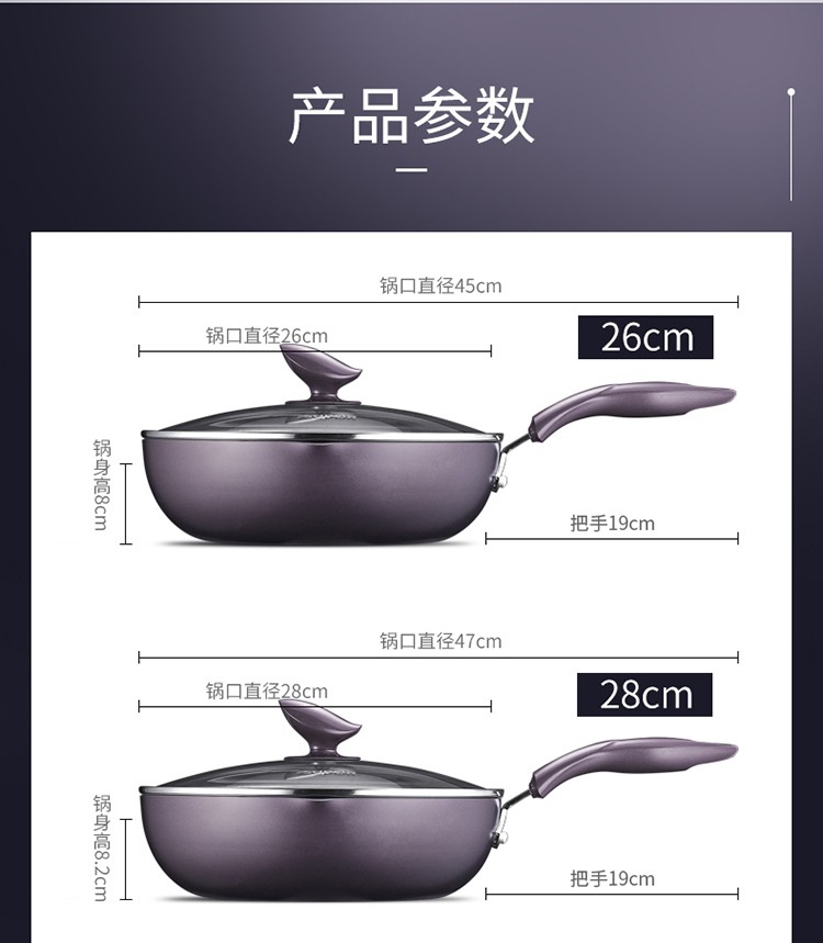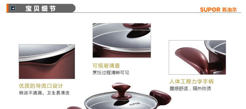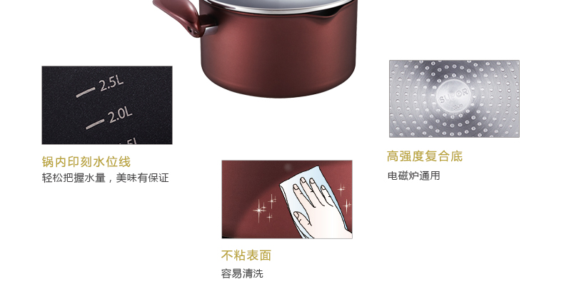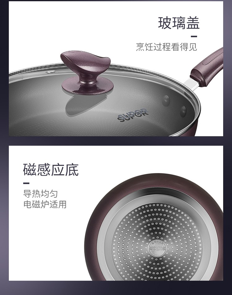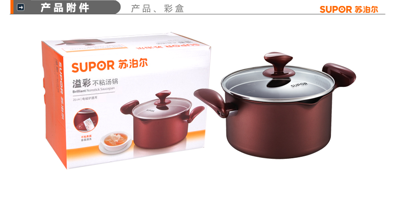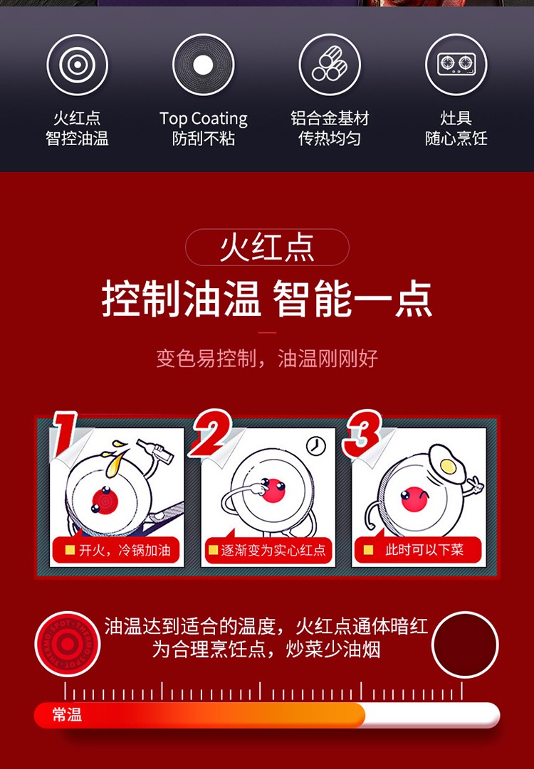 SUPOR Fire Red Spot No Oil Smoke Wok Non-stick Pot Set, Soup Pot, Frying Pan PJ28R4/22K1