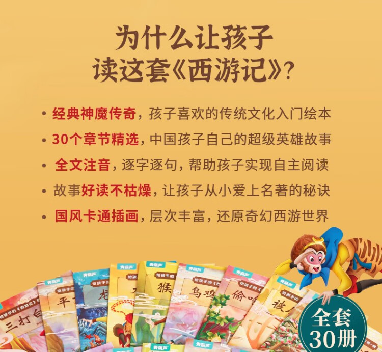 A complete set of 30 volumes of the Journey to the West children's picture book phonetic version. The classic four classics Journey to the West comic book version for children aged 3-6-8. Sun Wukong's Havoc in Heaven story book. Extracurricular reading for primary school students in the first and second grades. Journey to the West comic book. Children's Day gift for girls and boys. Summer homework. One to two summer vacation connection. Primary school to junior high school summer connection.