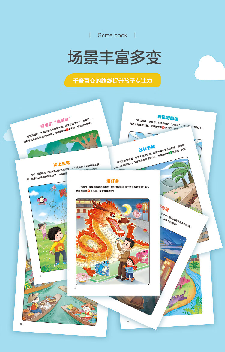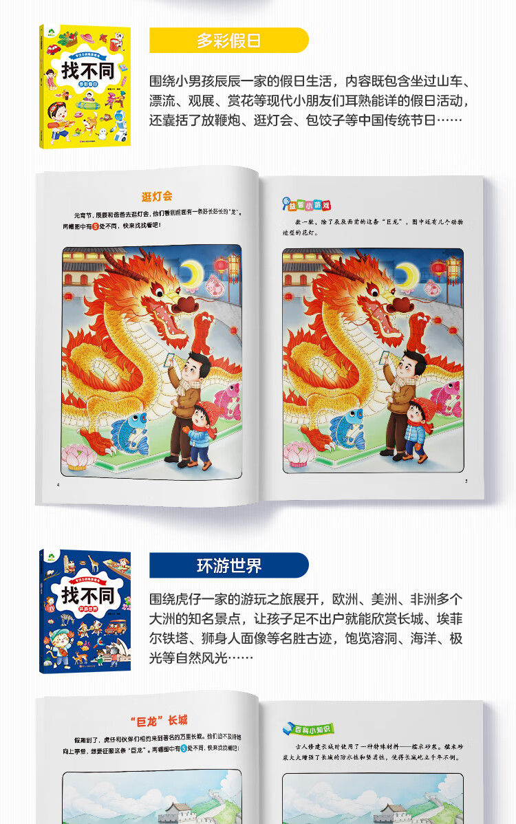 Concentration training game book Find the Difference (Travel Around the World) Fun Find the Difference 3-6-year-old kindergarten puzzle game to cultivate memory logical thinking practice Find the Difference book