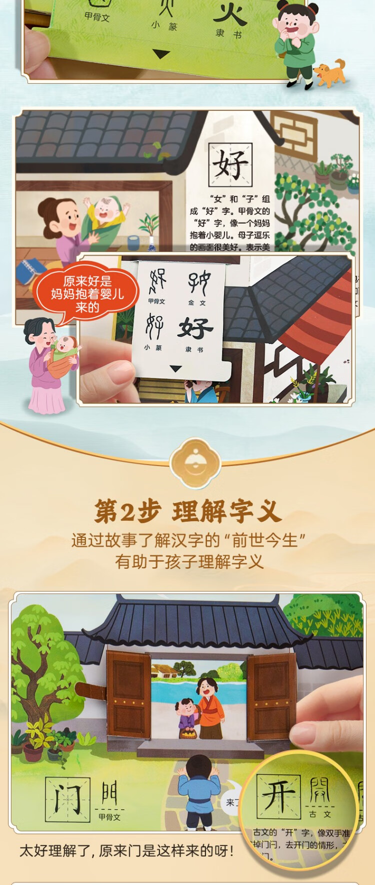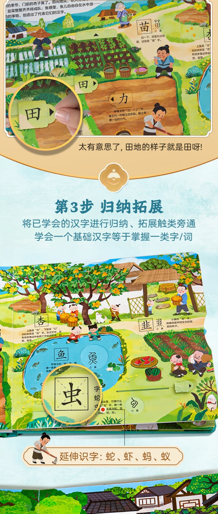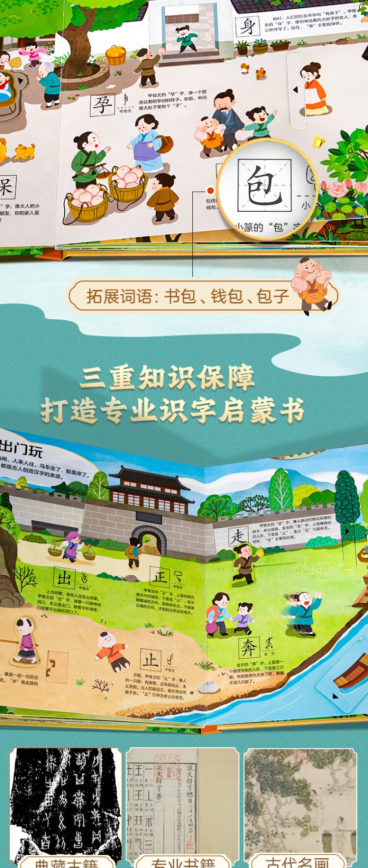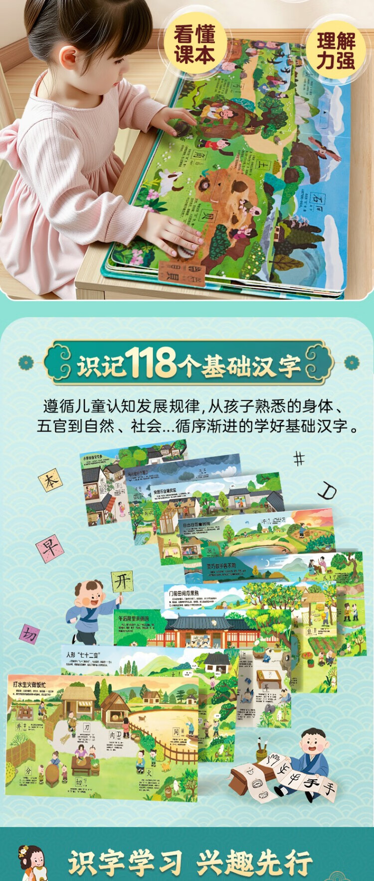 Chinese characters are really fun, enlightenment interactive three-dimensional book, a complete set of 2 volumes, children's 3D three-dimensional book flip book, 3-6-8 years old baby's young connection to preschool literacy artifact, Green Hulu