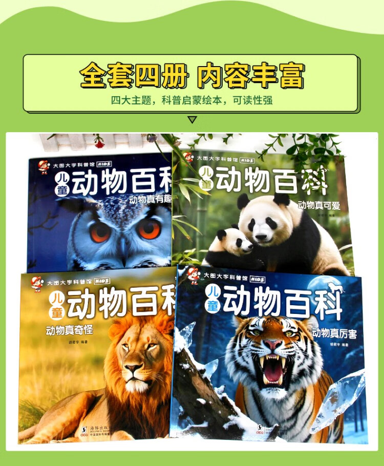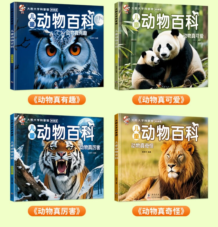 Complete 4-volume children's animal encyclopedia, large picture and large character encyclopedia, 3-6 years old encyclopedia picture book, animals are really interesting, animals are strange, animals are so cute, primary school students' animal secrets