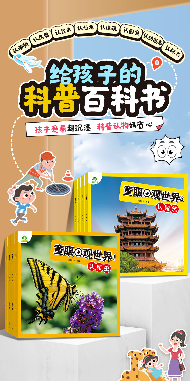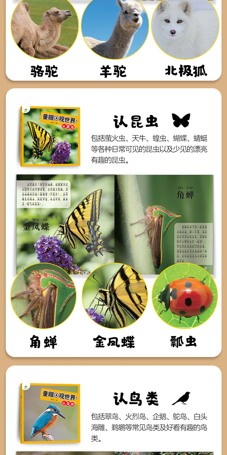 Free shipping for one piece Children's Eye View of the World 4 volumes Birds, Animals, Dinosaurs and Insects 4-8 year old children see pictures and recognize objects Kindergarten Enlightenment Puzzle Early Education Picture Book Encyclopedia Full Set of Color Pictures and Phonetic Notation