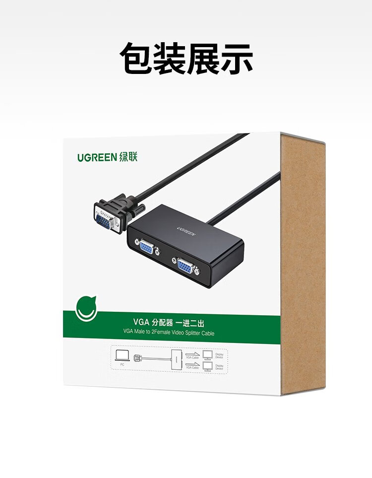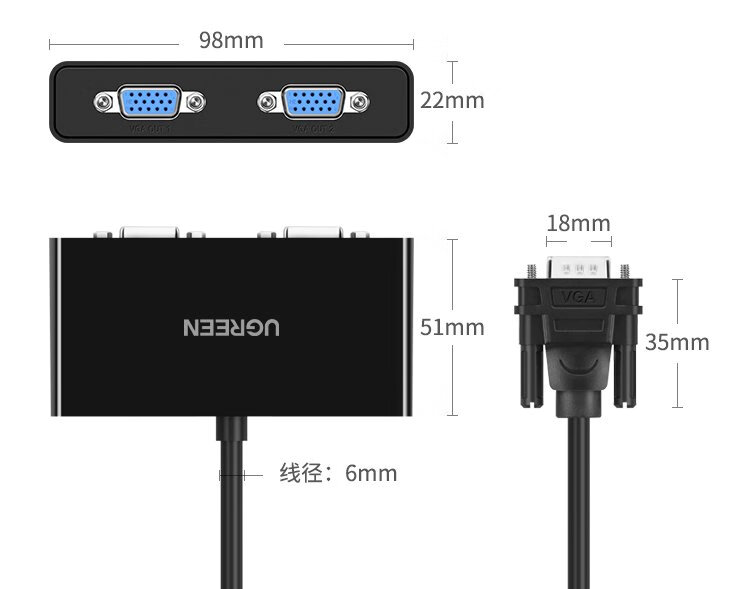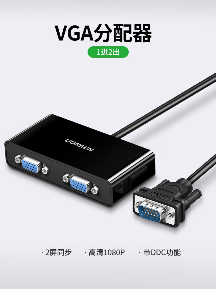 Greenlink VGA splitter 1/2 laptop computer desktop connected to monitor projector HD video converter 1 in 2 out same screen 1/2 screen splitter 40254