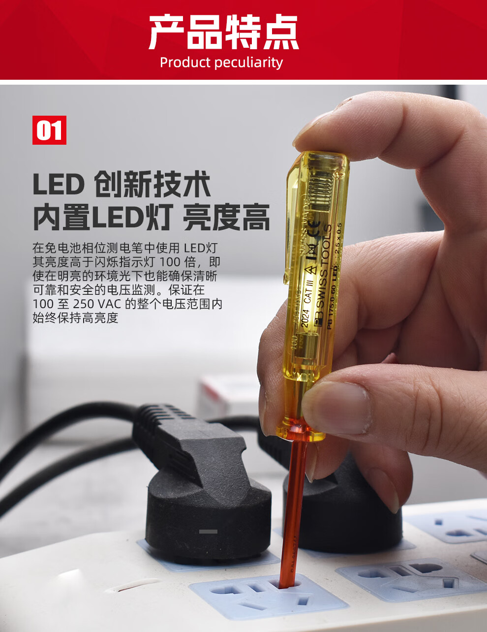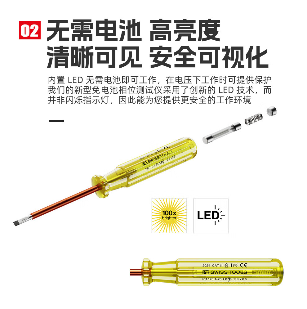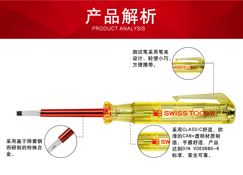 PB SWISSTOOLS Swiss imported electric pen screwdriver test pen electric pen test pen electric pen 250V tool screwdriver batch 175. 3.5*75mm (PB 175.1-75)