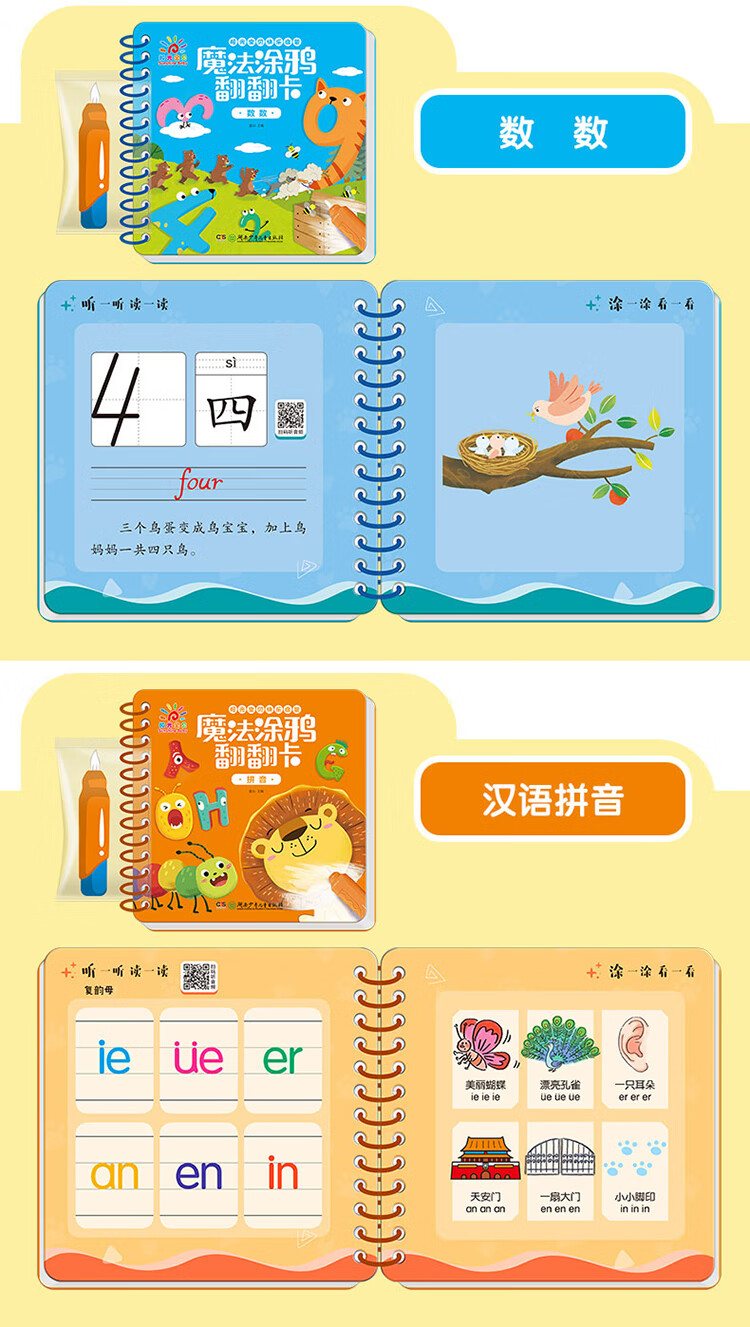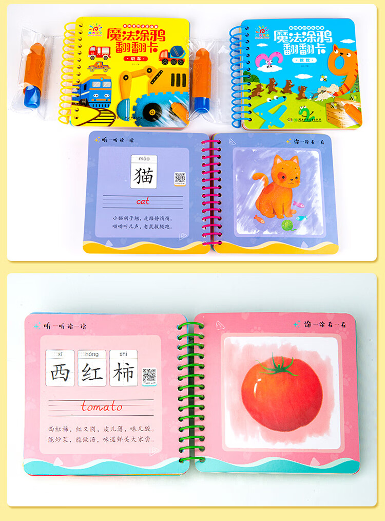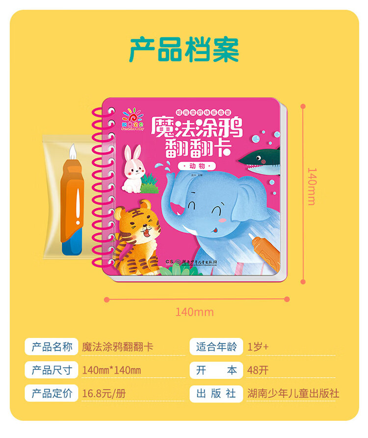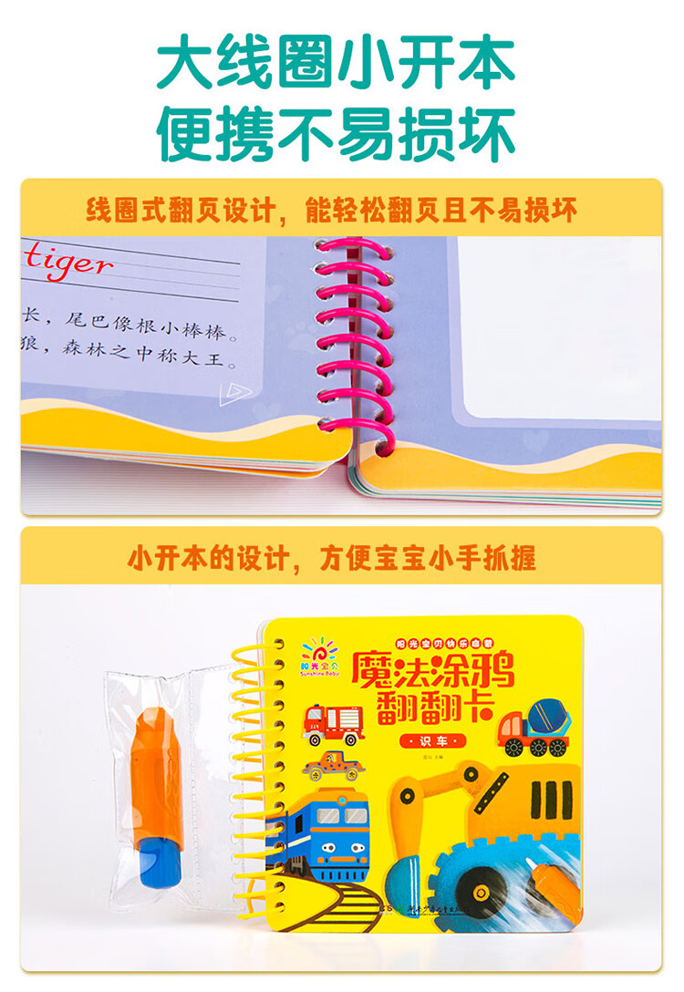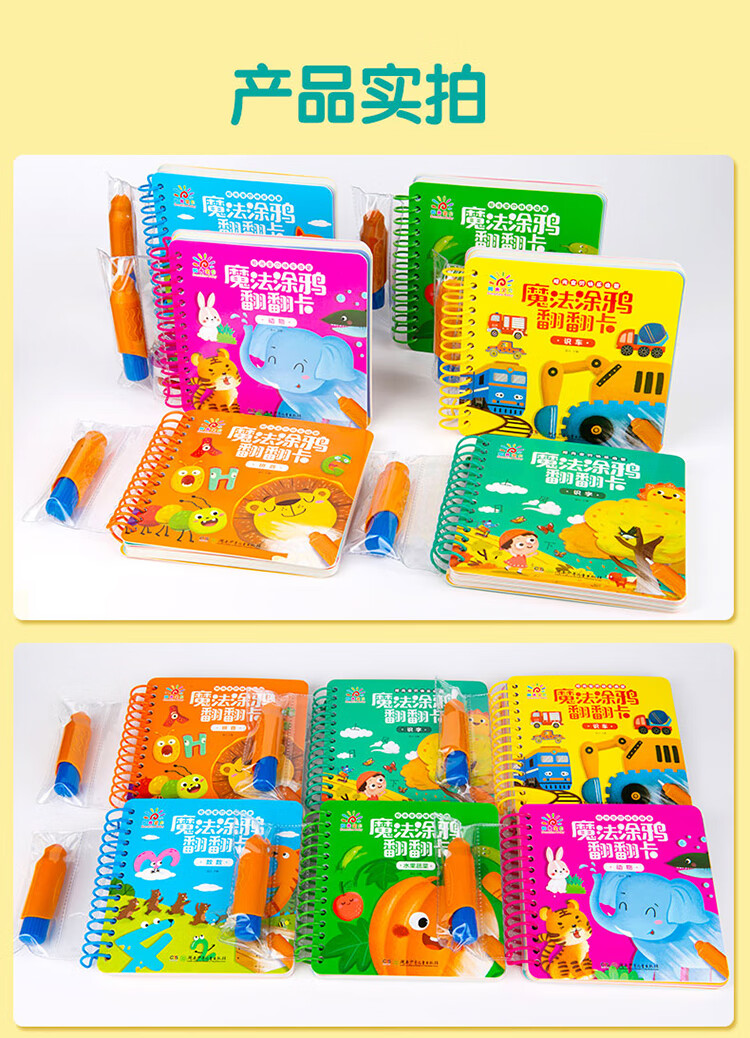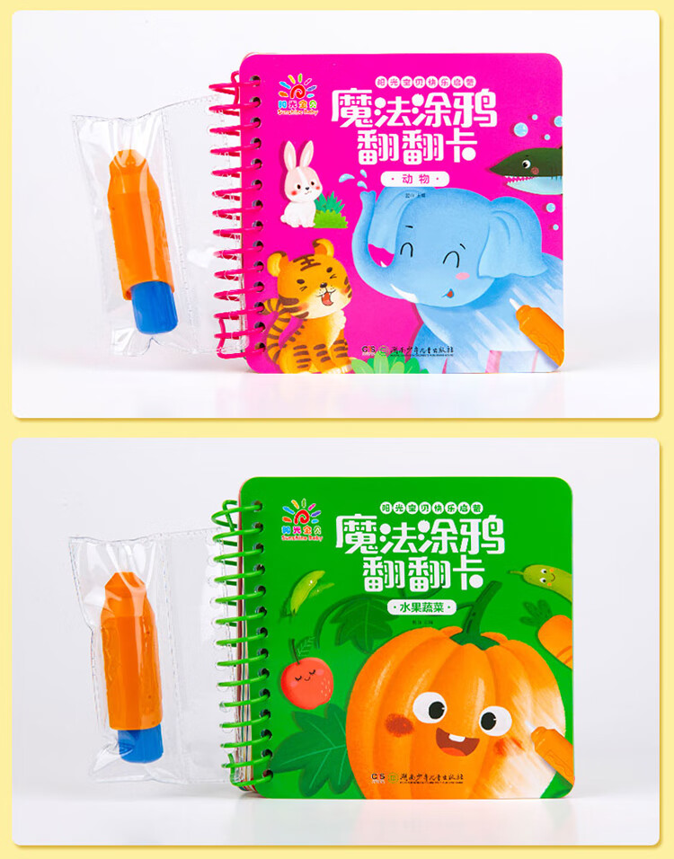 Sunshine Baby Magic Graffiti Flip Card Animal Enlightenment Early Education Tear-proof Hard Card Children's Drawing Clear Water Repeated Coloring Book 1-6 Years Old Scan the QR Code to Listen to the Audio Toddler Drawing Book