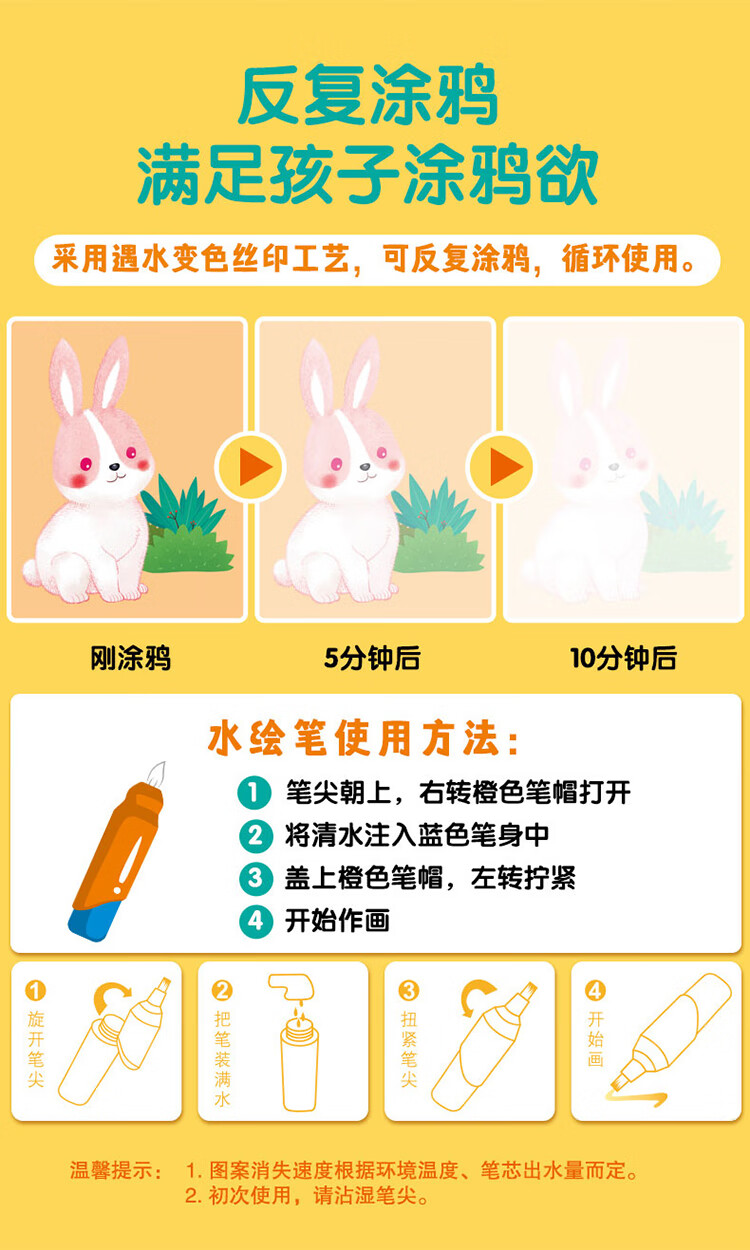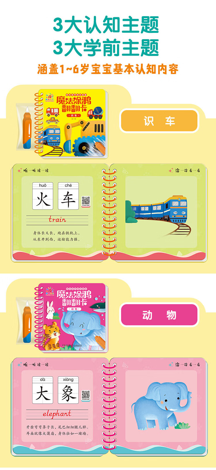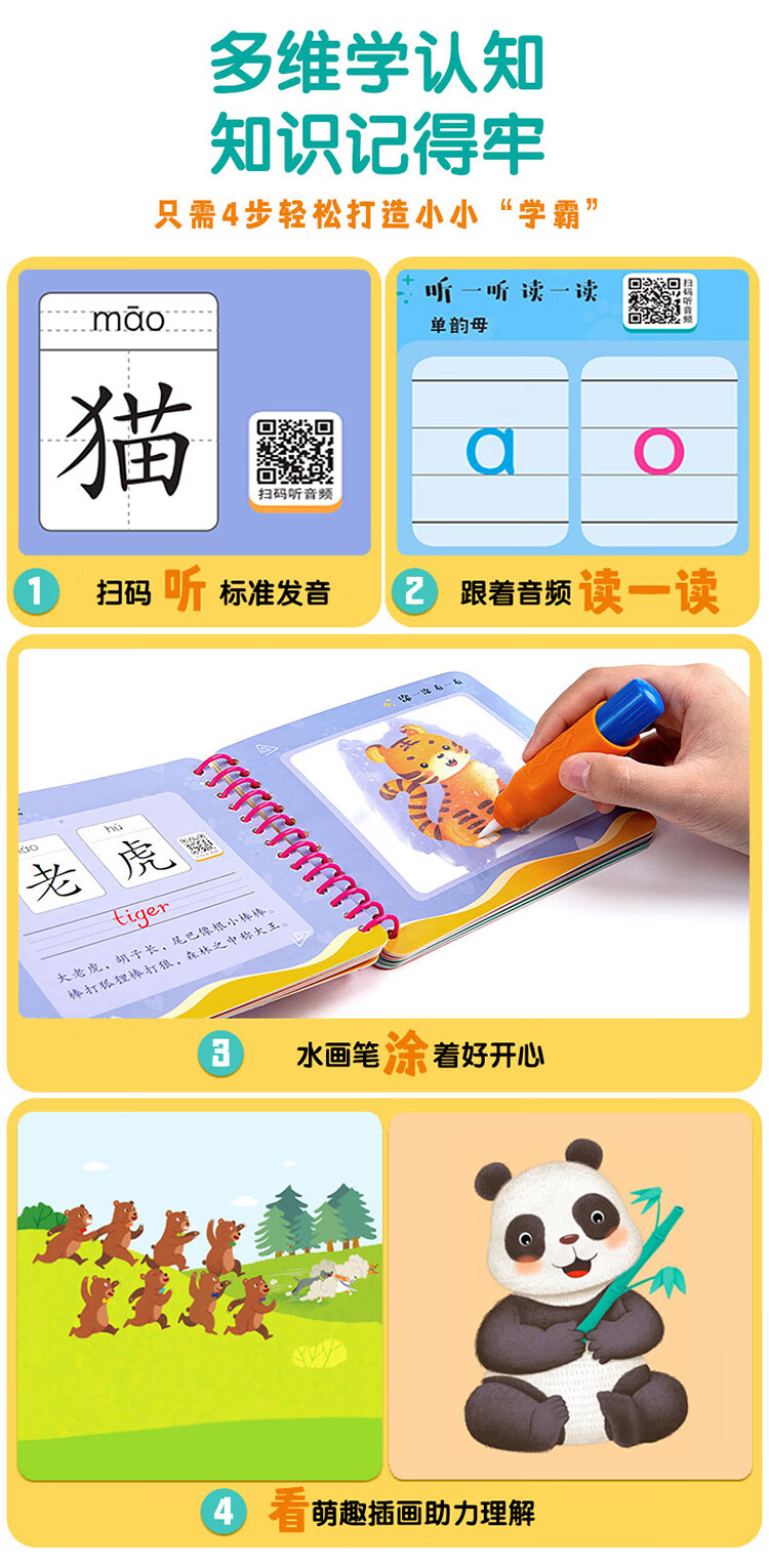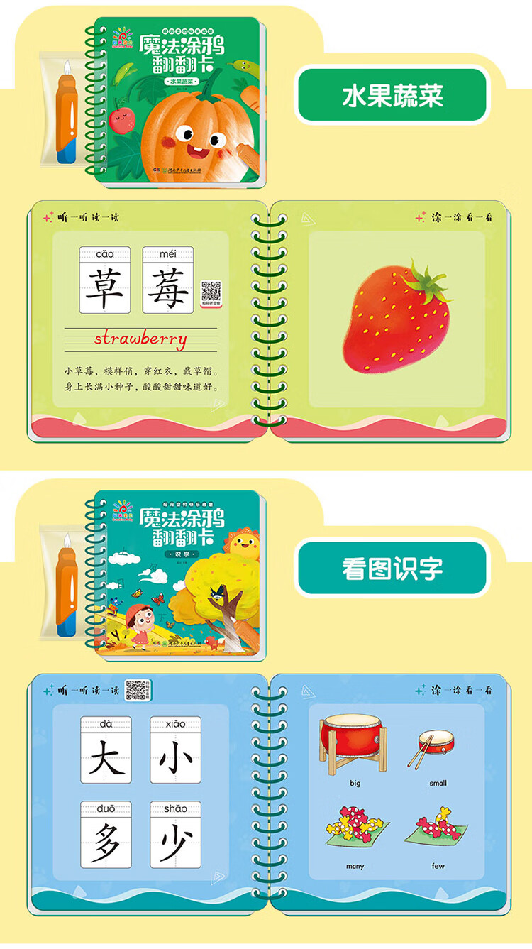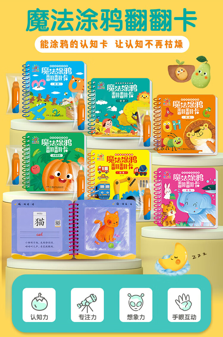 Sunshine Baby Magic Graffiti Flip Card Animal Enlightenment Early Education Tear-proof Hard Card Children's Drawing Clear Water Repeated Coloring Book 1-6 Years Old Scan the QR Code to Listen to the Audio Toddler Drawing Book