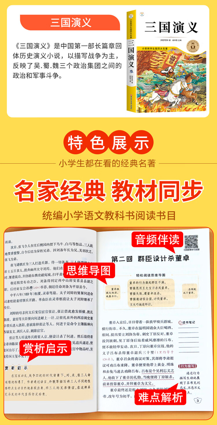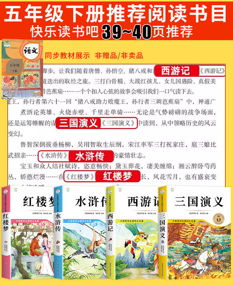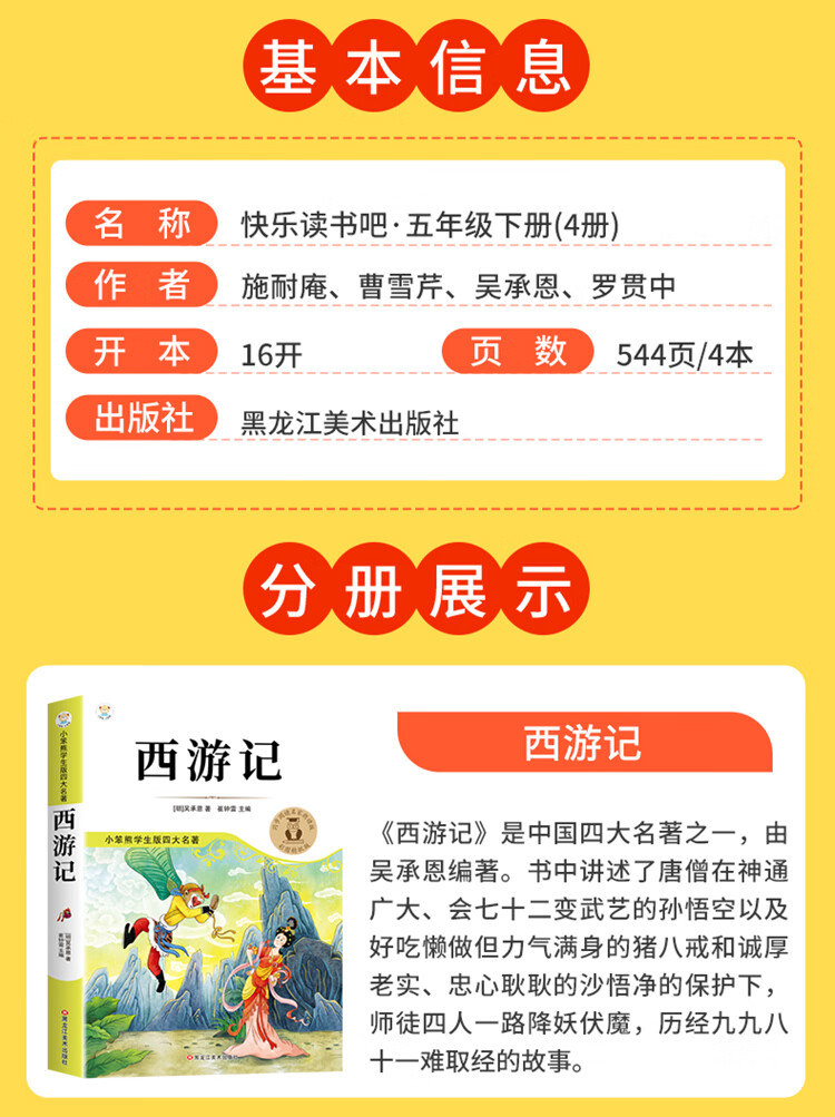 The primary school student edition of the four major classics, all 4 volumes, Journey to the West, The Romance of the Three Kingdoms, The Dream of the Red Mansions, The Water Margin, Youth Edition, Happy Reading, Vol. 2, a must-read extracurricular book for fifth graders, Children’s Edition, Genuine applicable People’s Education Edition, Synchronous Textbook, Happy Reading, Extracurricular Reading, Extracurricular Books for Primary School Students, Recommended by Fifth Grade Teachers