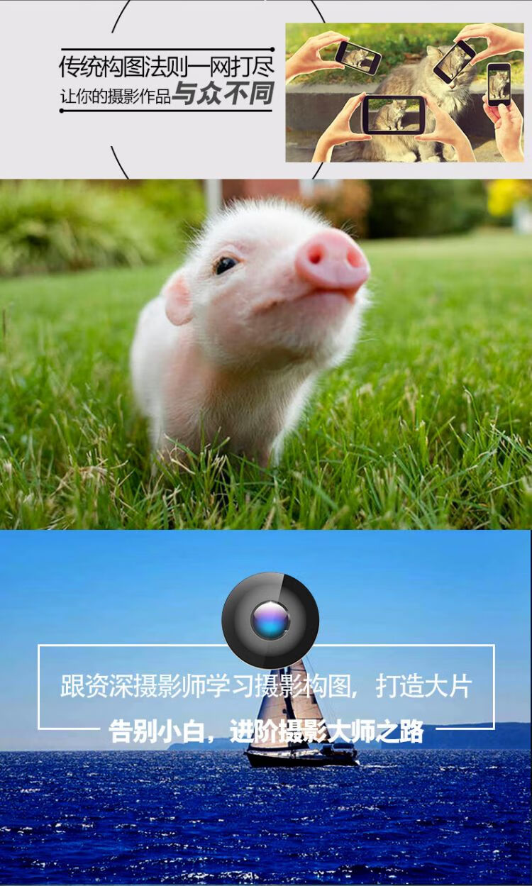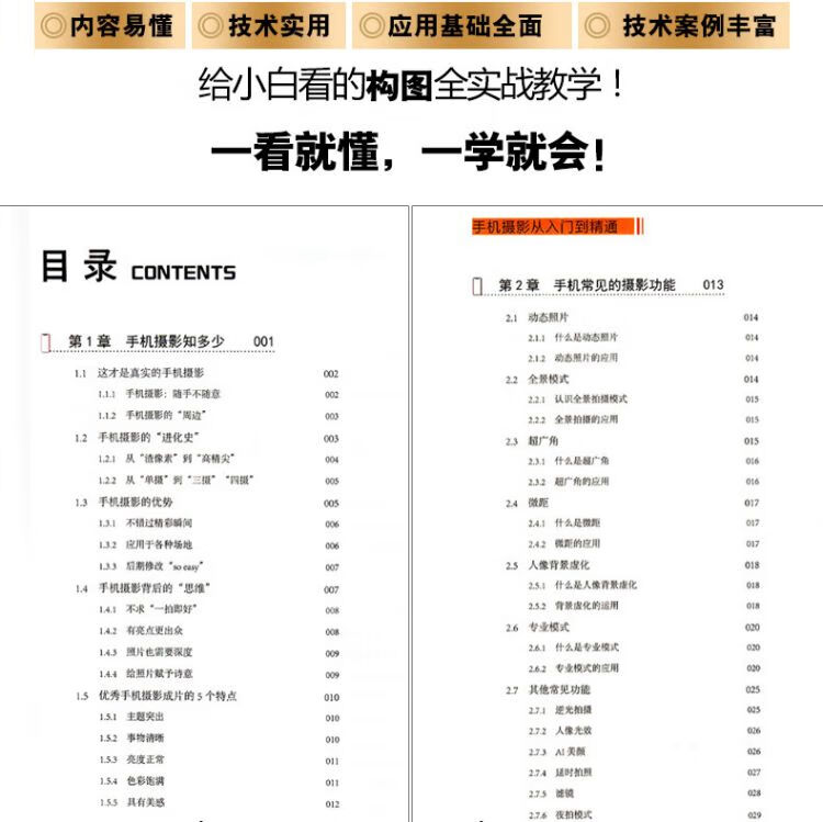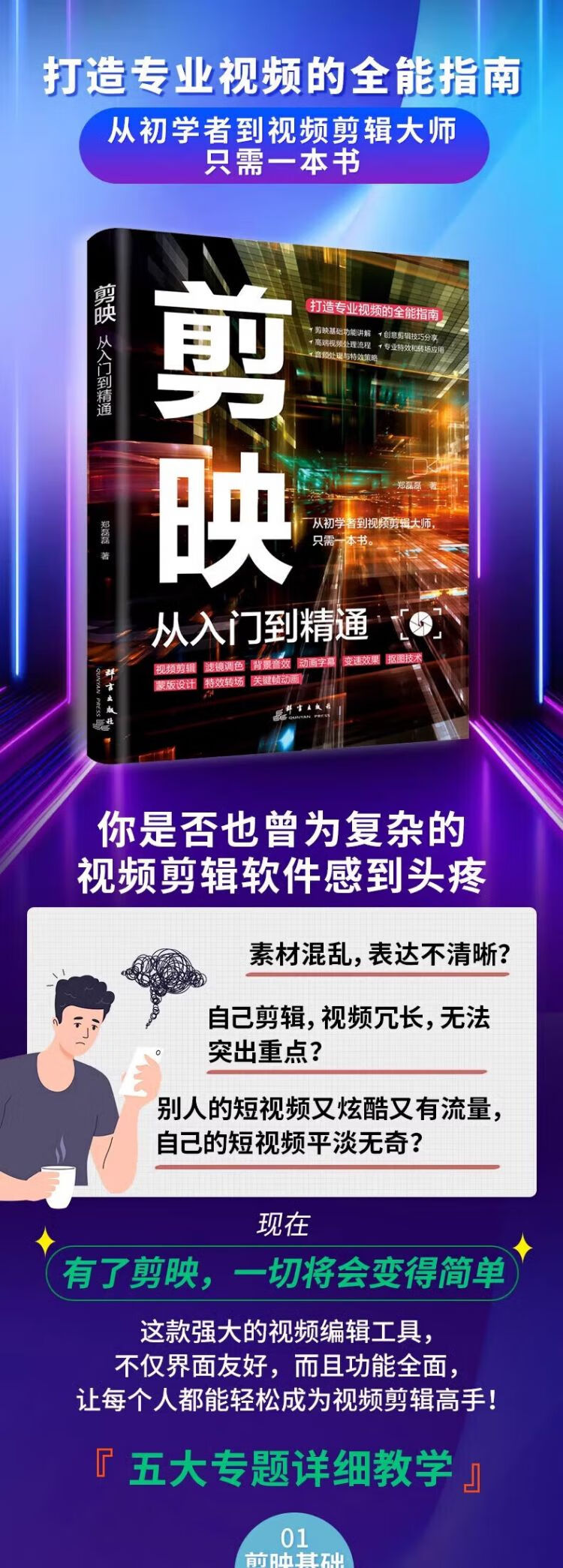 3 volumes in total, editing and screening, from entry to proficiency + mobile photography, from entry to proficiency + igniting traffic, easily creating popular short videos, shooting techniques, video editing tutorials, filter, color, and matting techniques, masking special effects, transitions, keyframe animations, fun with short video content marketing celebrity mode