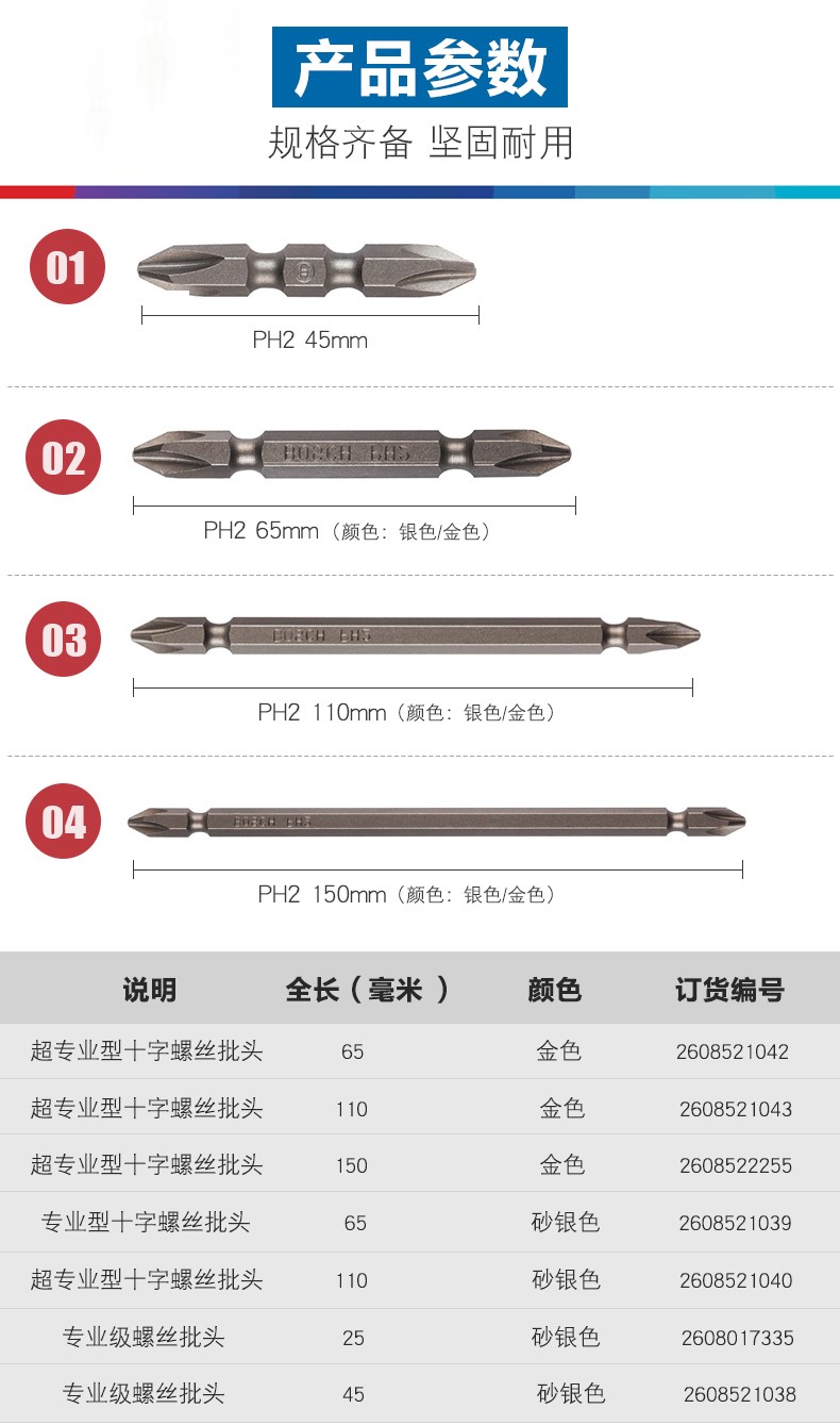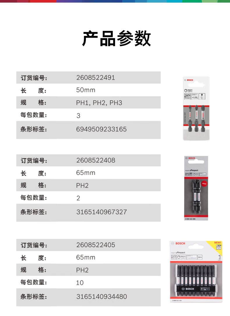 Bosch (BOSCH) Bosch BOSCH electric screwdriver bit screwdriver bit screwdriver bit bit screwdriver bit with magnetic impact resistance Bosch magnetic impact resistant 65mm bit 1 piece