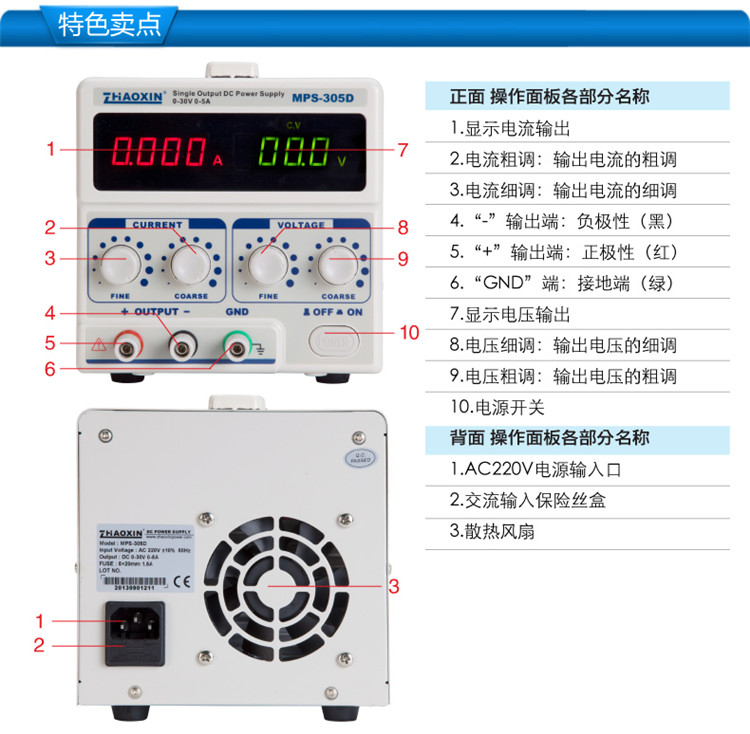 ZHAOXINZHAOXIN Zhaoxin adjustable DC regulated power supply notebook mobile phone repair power supply MPS-305D standard +5A output line