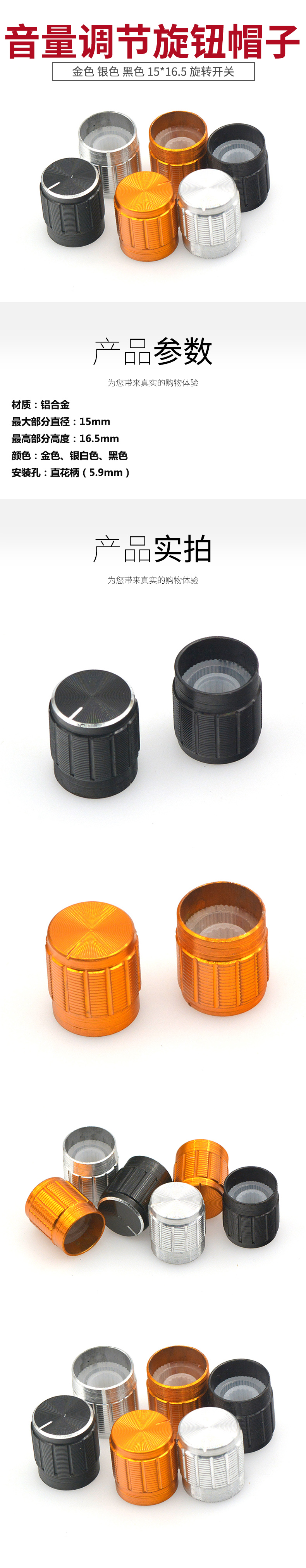 TaoTimeClub gold silver black 15*16.5 rotary switch knob hat black