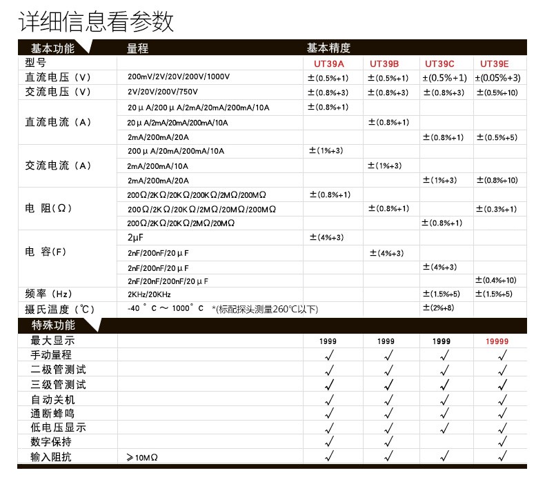 Unilide UT39E digital multimeter high-precision digital display household multimeter UT39E