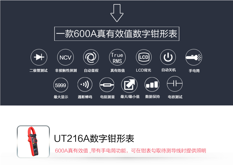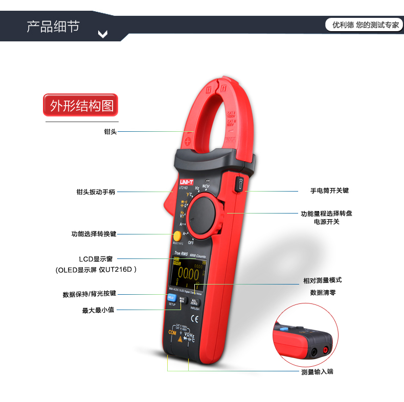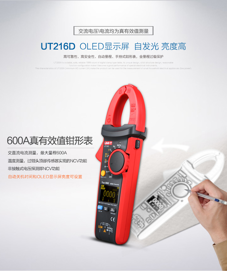 UNI-T clamp meter true RMS surge current high-precision current clamp meter digital household clamp multimeter UT216C