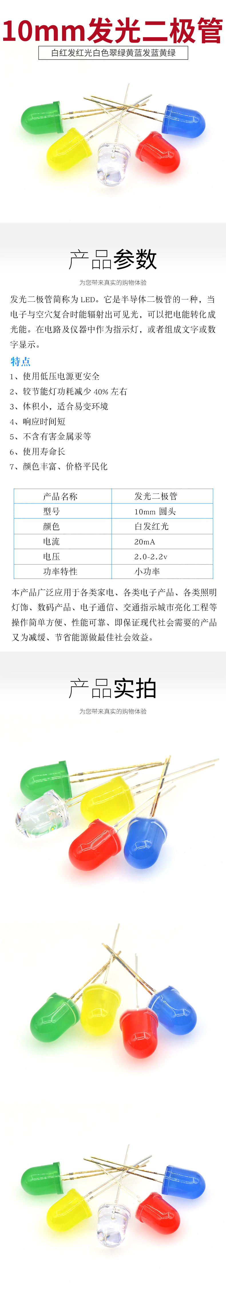 TaoTimeClub 10MM/F10 round head LED light, light-emitting diode light, ultra-bright light-emitting tube, lamp beads, 10mm white light (10 pcs)