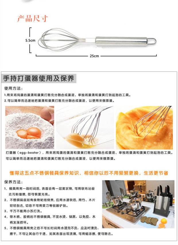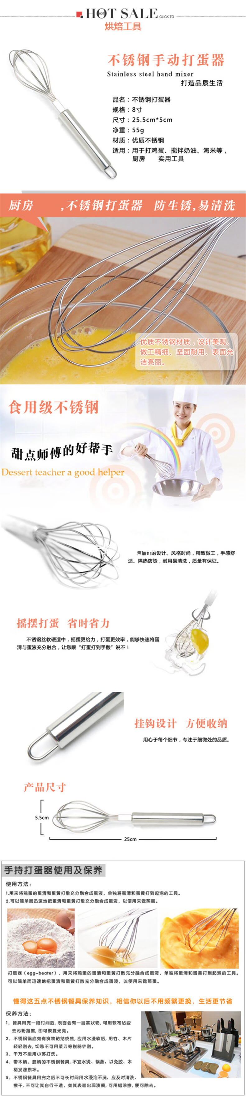 SHENGDE thickened non-magnetic stainless steel egg beater manual stirring rod household butter cream stirring egg beating rod