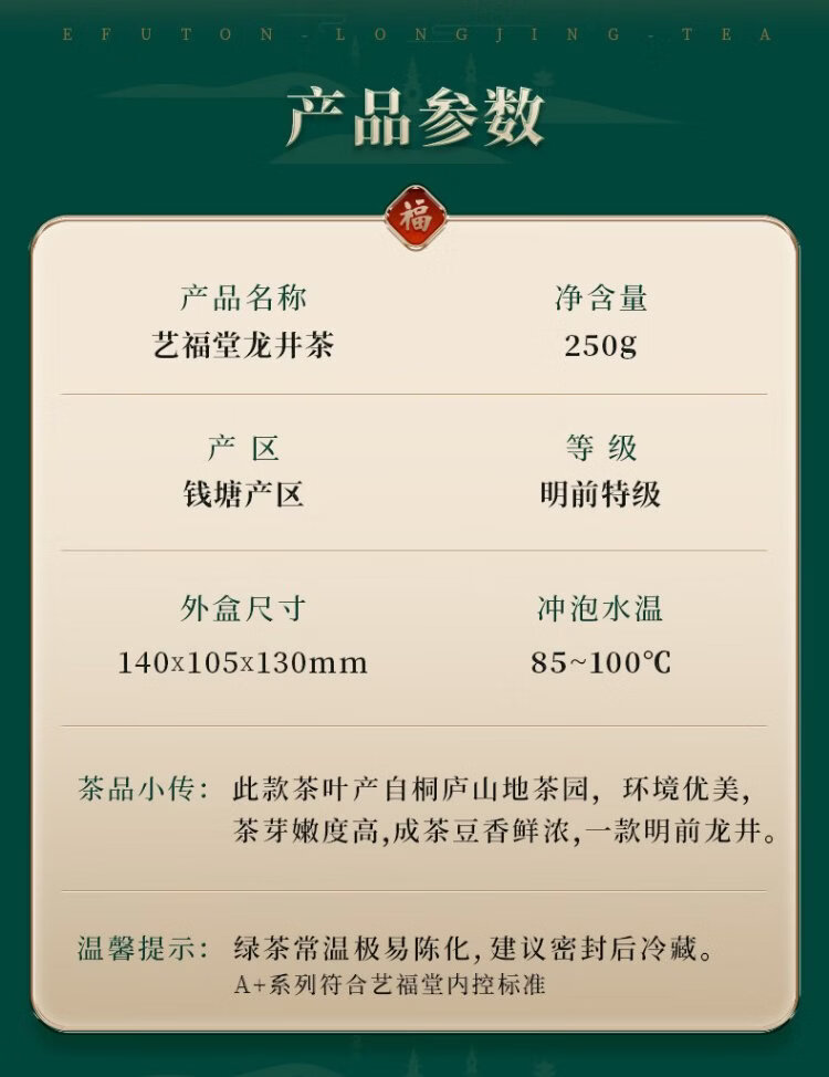 Yifutang Green Tea New Tea Hangzhou Qiantang Longjing Mingqian Premium Boutique AA+250g Self-drink New Year's Day Gift Tea