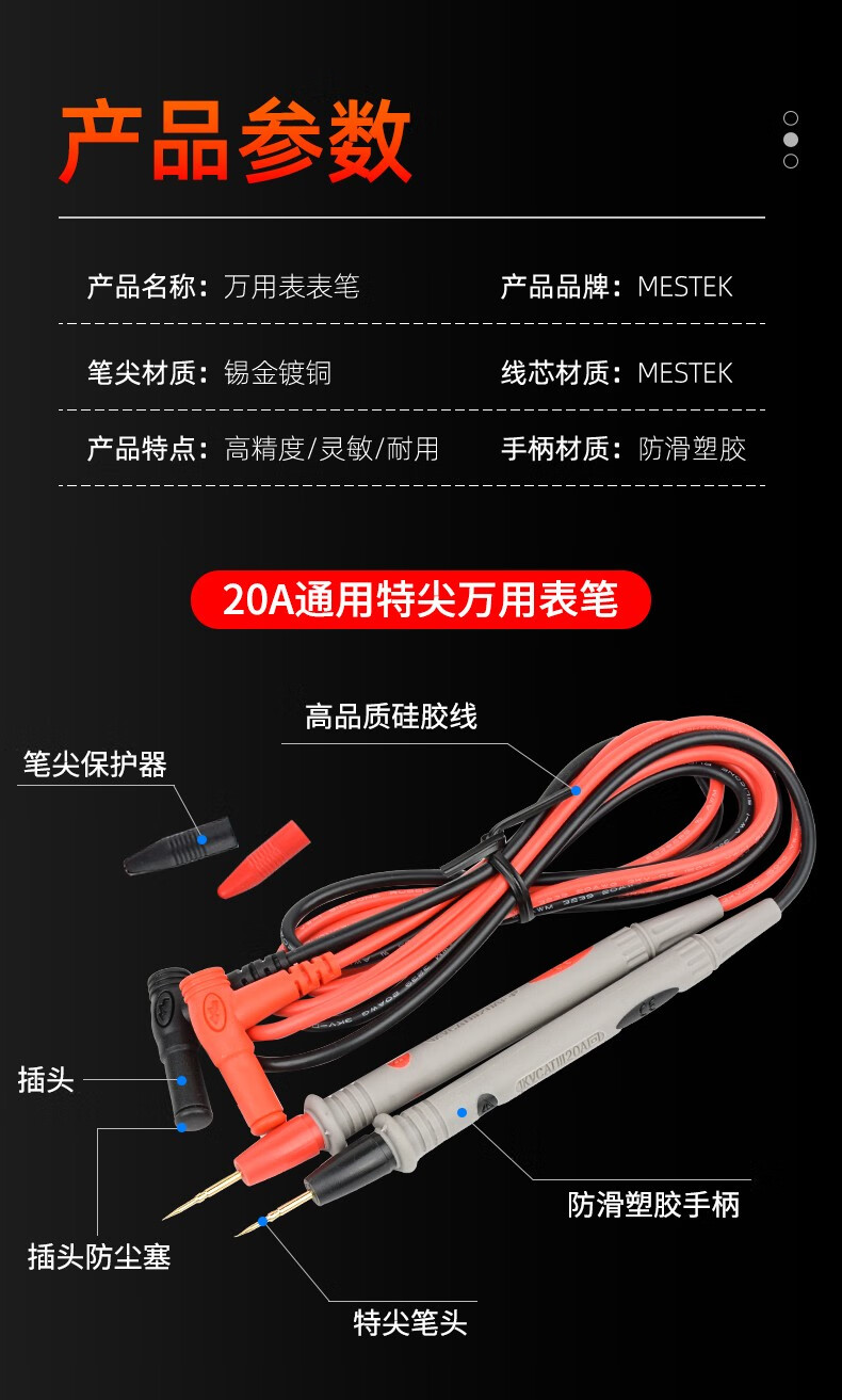 MESTEK multimeter test pen silicone wire probe extra-point plug test lead wire electrician multimeter special wire universal meter needle wire test lead wire PVC material/1000V20A