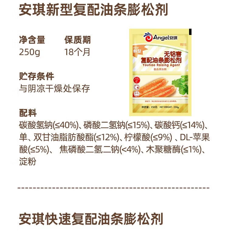 Angel compound fried dough sticks leavening agent 250g without added aluminum household fried dough sticks powder crispy fluffy agent commercial baking ingredients