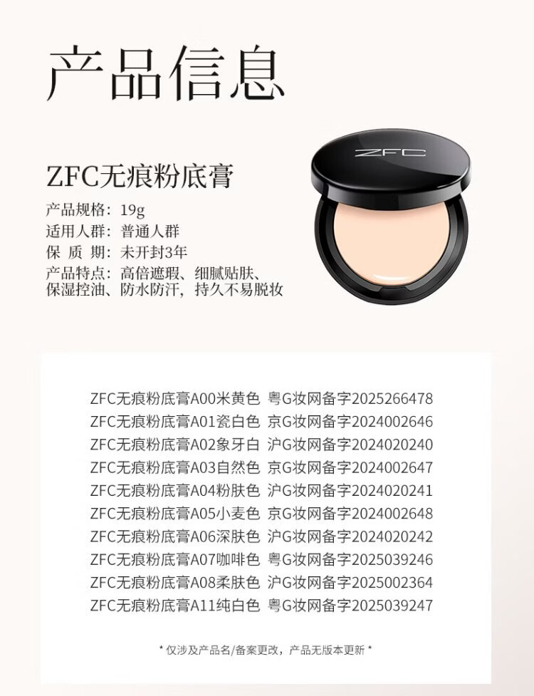 ZFC Seamless Foundation Cream Waterproof Concealer Covers Freckles, Spots and Acne Marks Wet Powder Repair Base Makeup Foundation Goddess Day Gift A02 (Brightening Skin Color) 19g