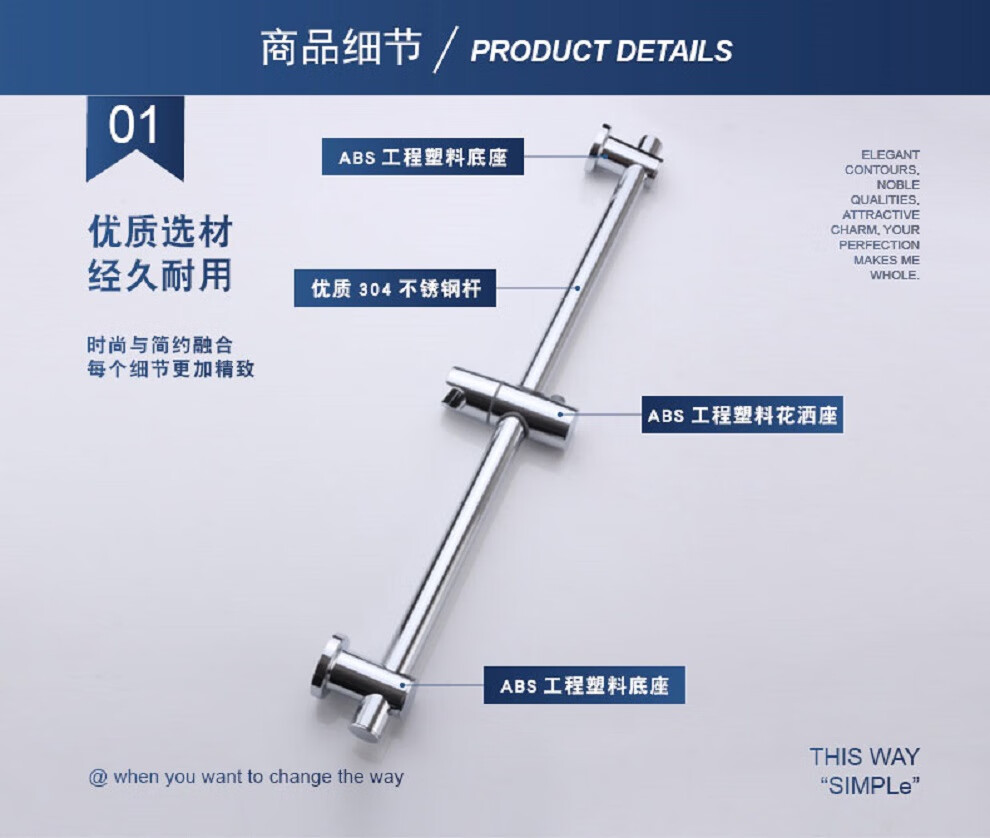 Asia Bathroom Stainless Steel Adjustable Lift Rod Shower Hanging Bathroom Shower Bracket Shower Booster Set Adjustable Bracket Accessories Adjustable Lift Rod Below 60cm