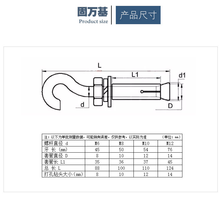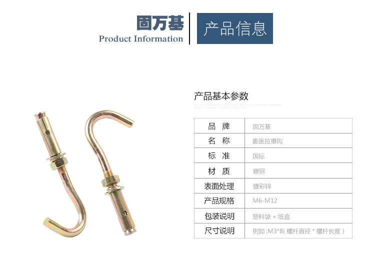Guwanji color-coated zinc-plated universal expansion hook, ceiling hook, expansion screw hook, ceiling fan, floor sandbag hook, color-coated zinc Cantonese expansion hook M6 5 pieces
