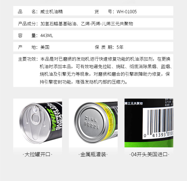 WHIZ US original imported engine oil essence engine anti-wear, noise reduction and anti-burning oil repair agent 443ml
